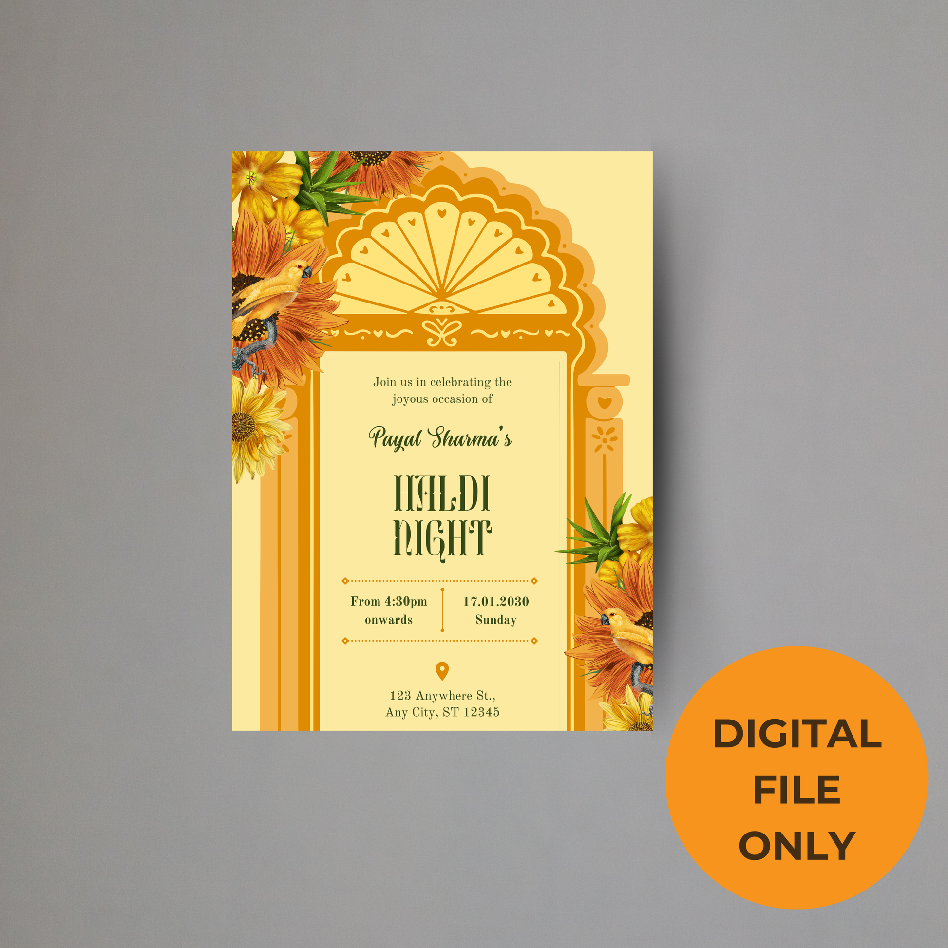 The Haldi Border Invite Digital Download is a perfect way to capture the joyous and colorful essence of your Haldi ceremony. Its cheerful design and customizable features make it a delightful addition to your celebration preparations.