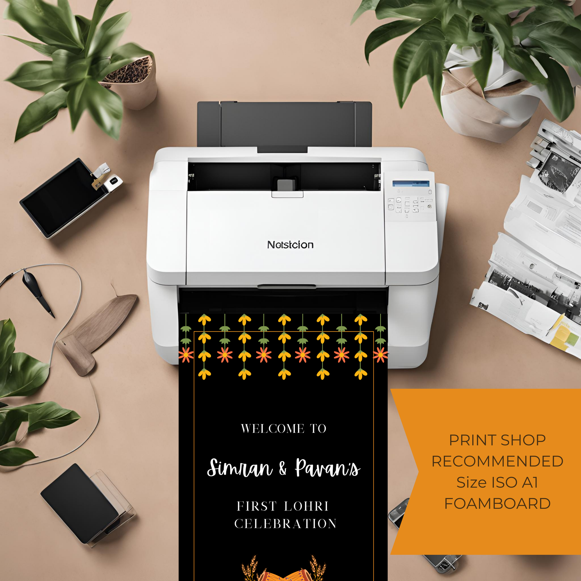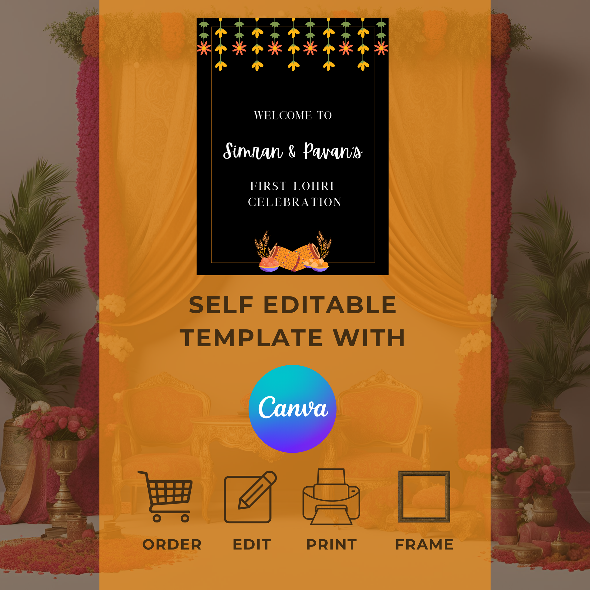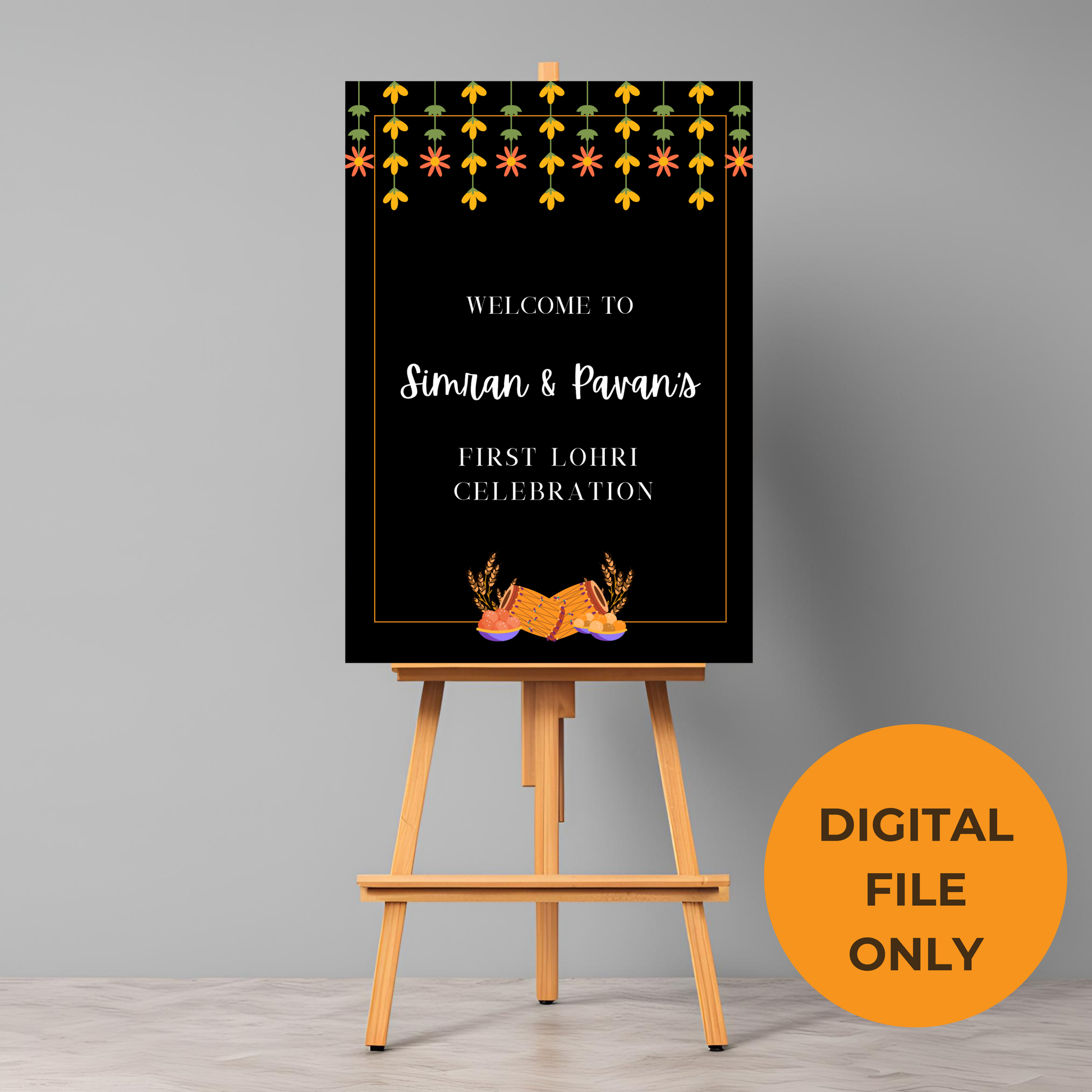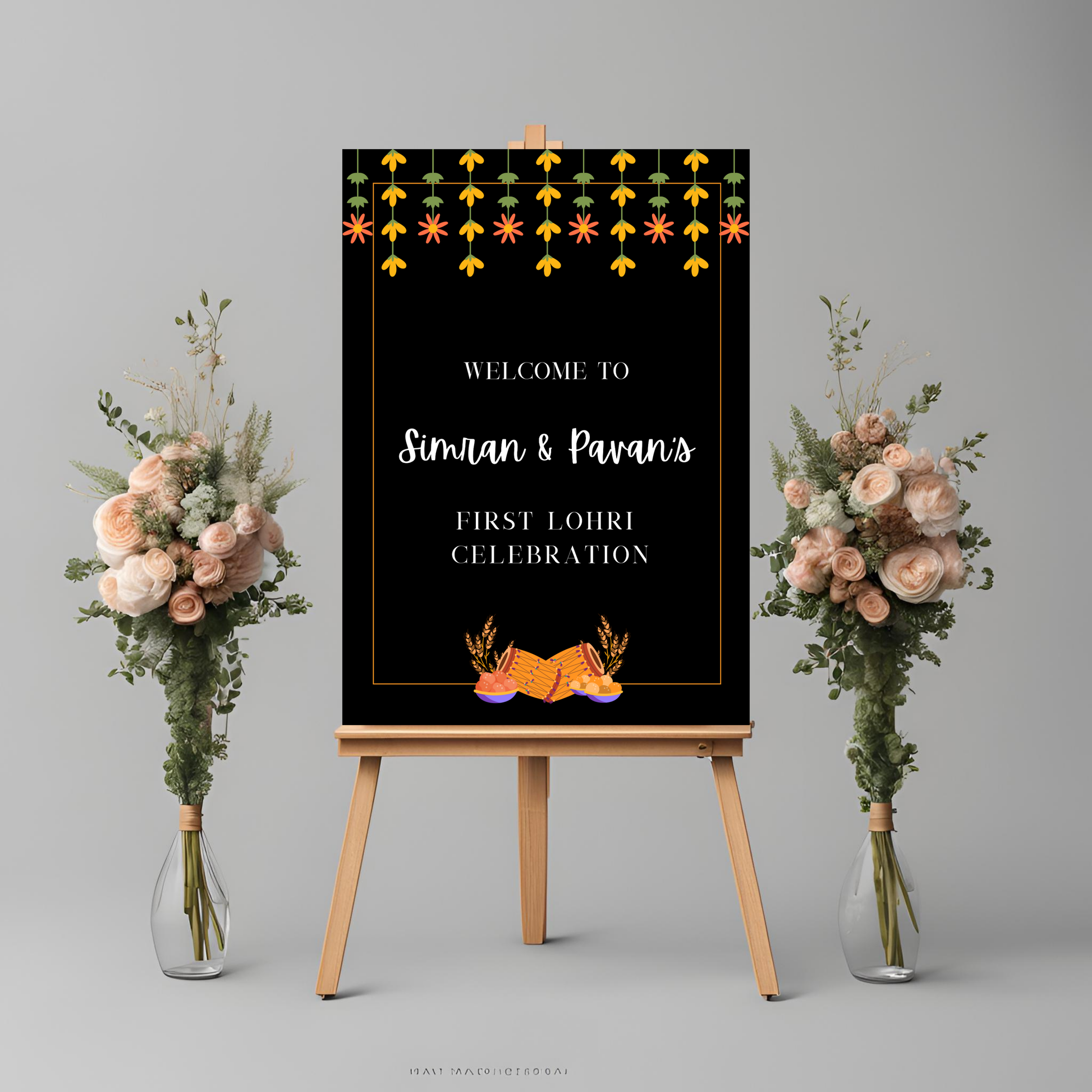Lohri Party Welcome Sign |Welcome Board for Punjabi Lohri Party | First Lohri Welcome Sign Template