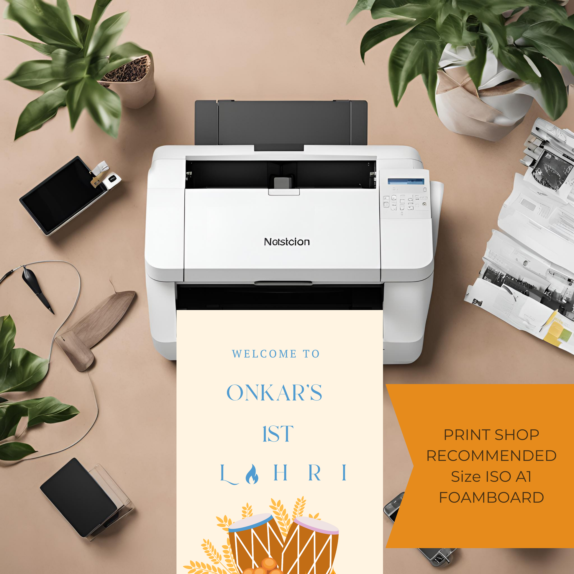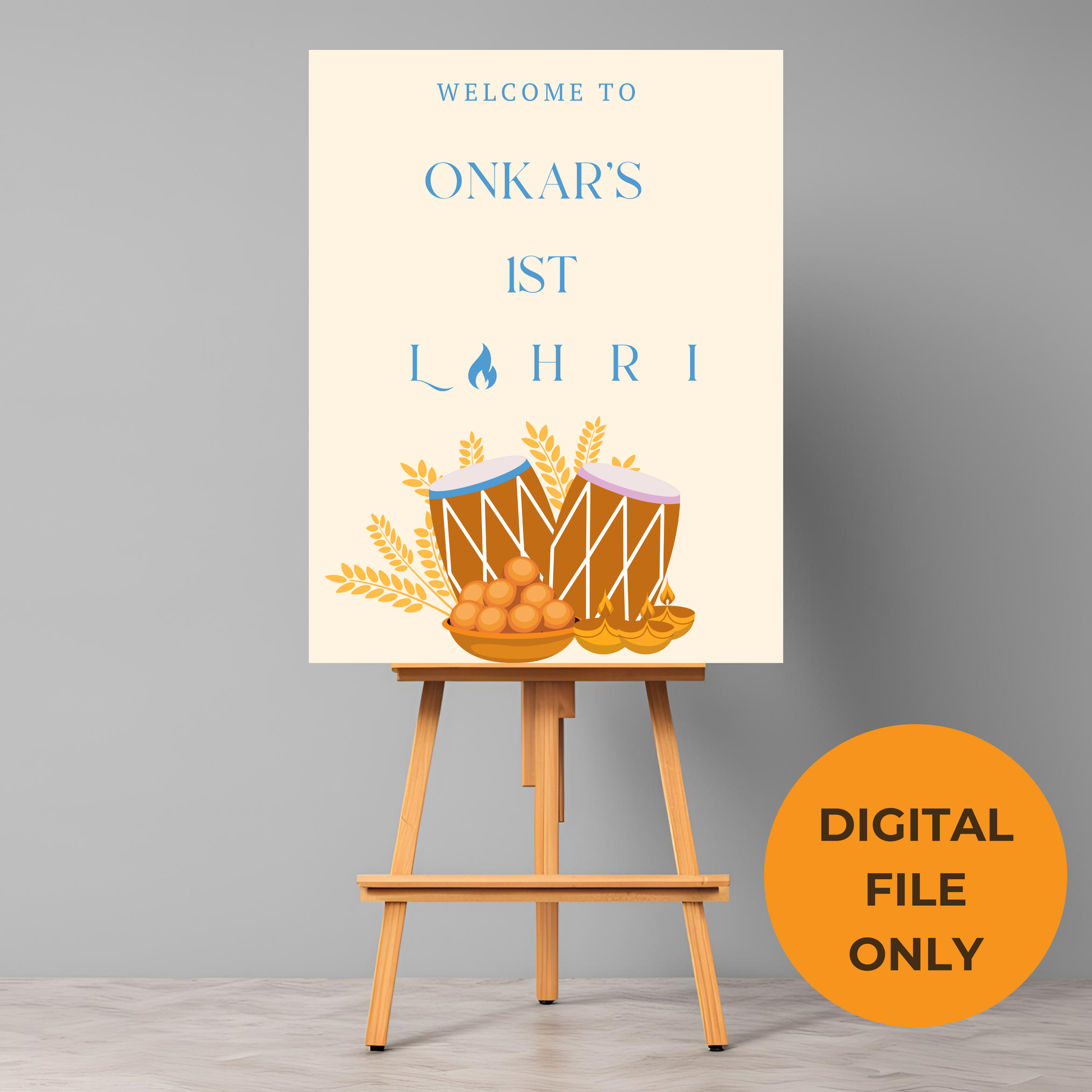 Lohri Decor Entrance Board Digital Download - Festive Online Template (Dhol, Wheat, Diva Lights)