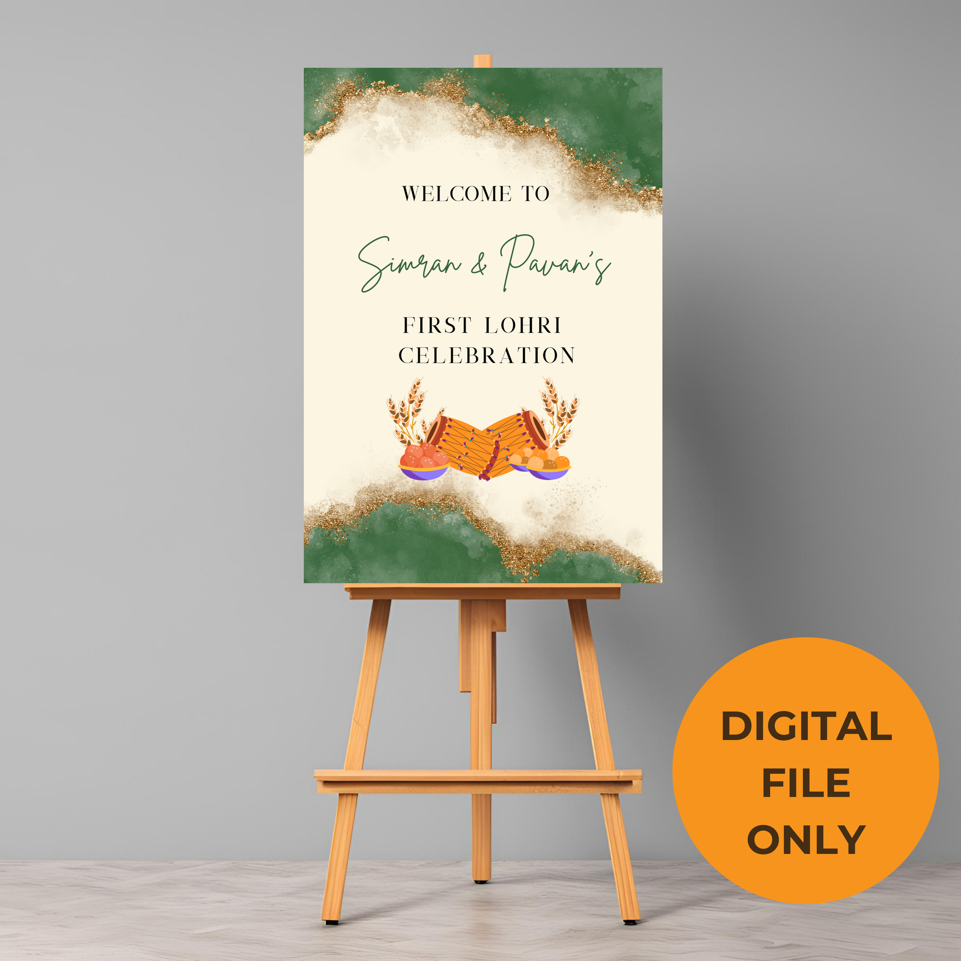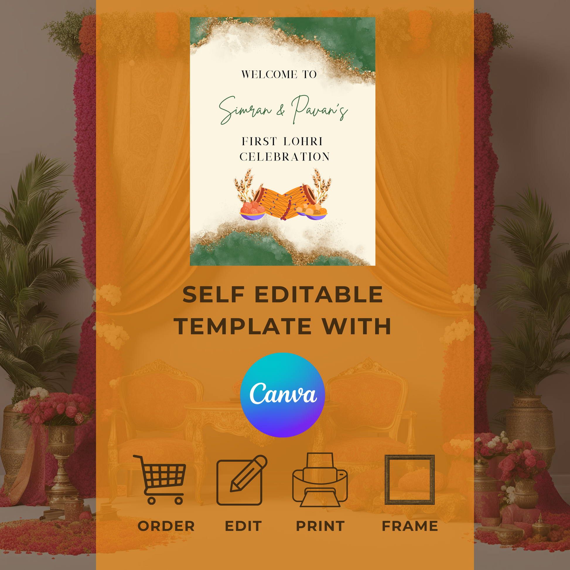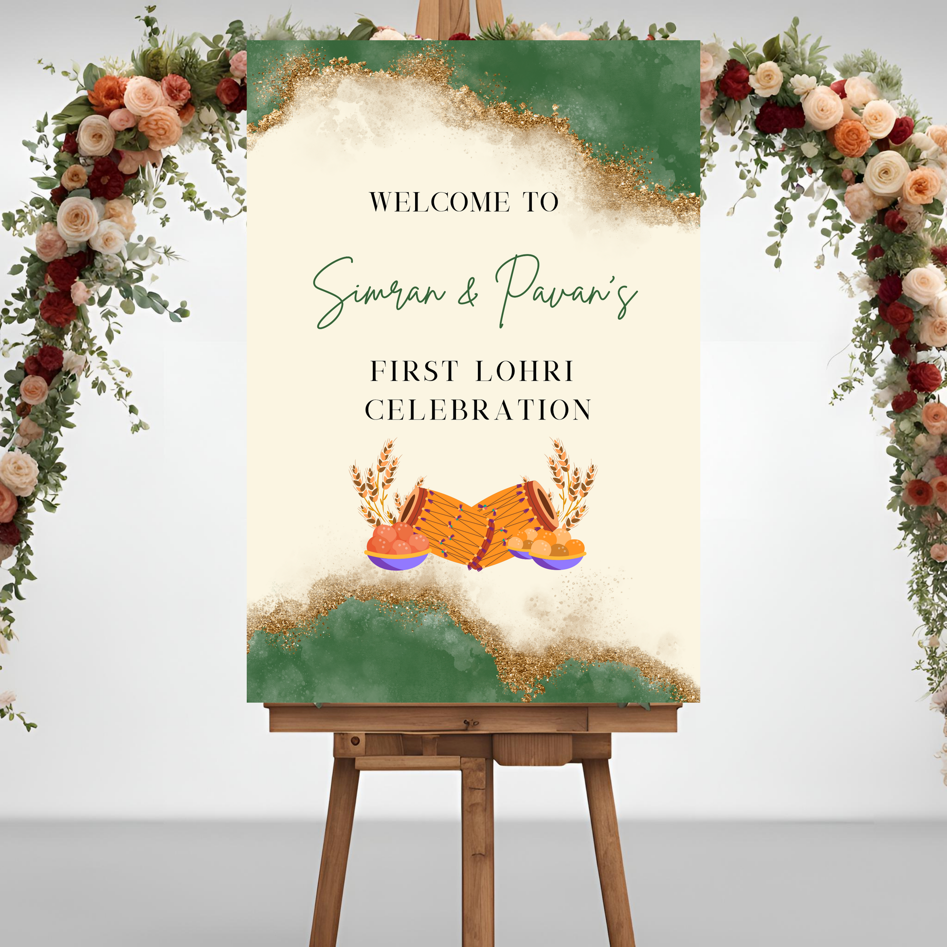 Lohri Party Welcome Sign |Welcome Board for Punjabi Lohri Party | First Lohri Welcome Sign Template