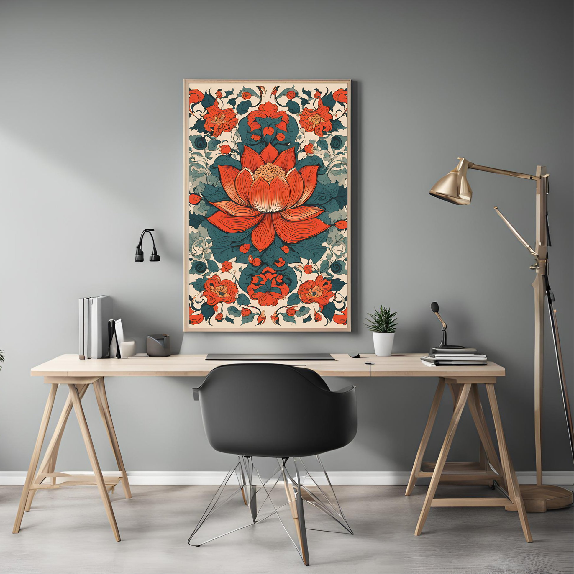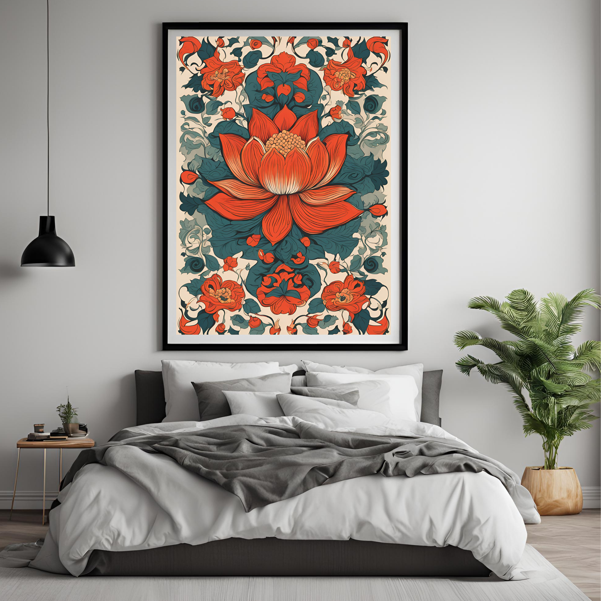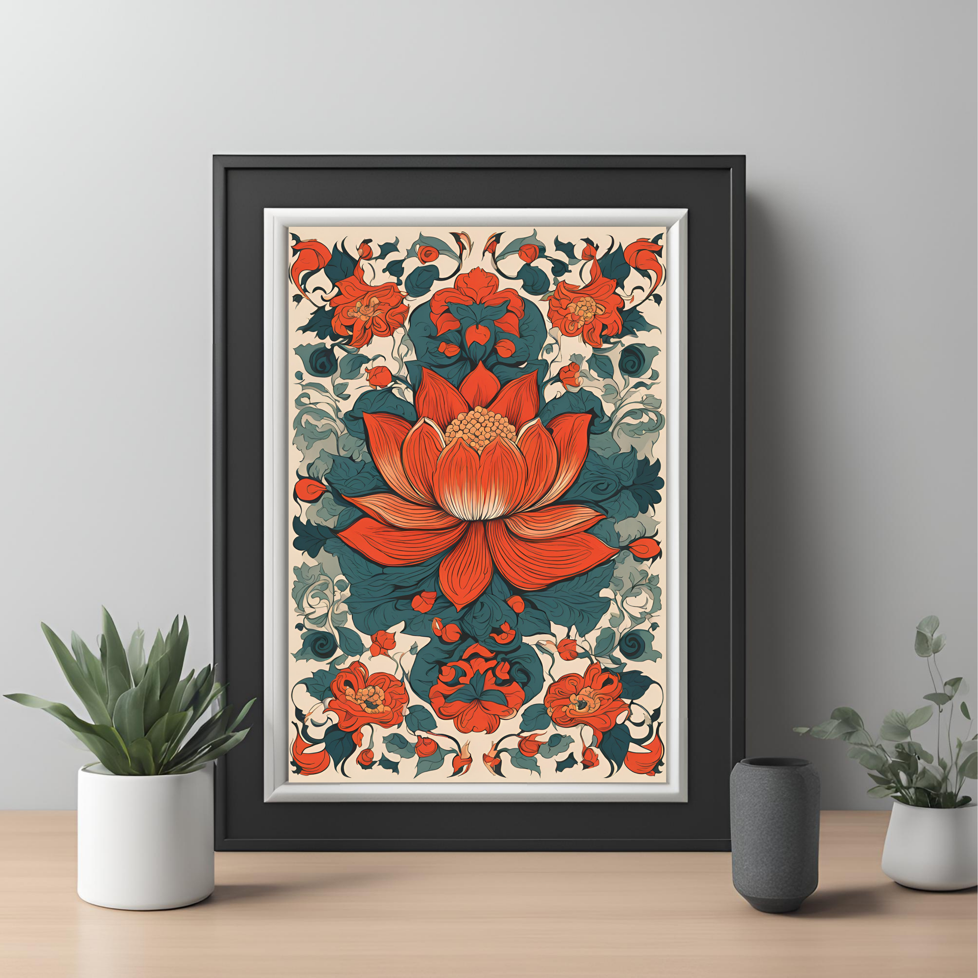 Perfect for Nature-Inspired, Cultural, or Boho Spaces: The "Lotus Traditional Folk Print" is ideal for living rooms, bedrooms, or spaces that appreciate nature, spirituality, or traditional folk art. Its rich design and vibrant colors bring a calm, yet striking, atmosphere to any room.