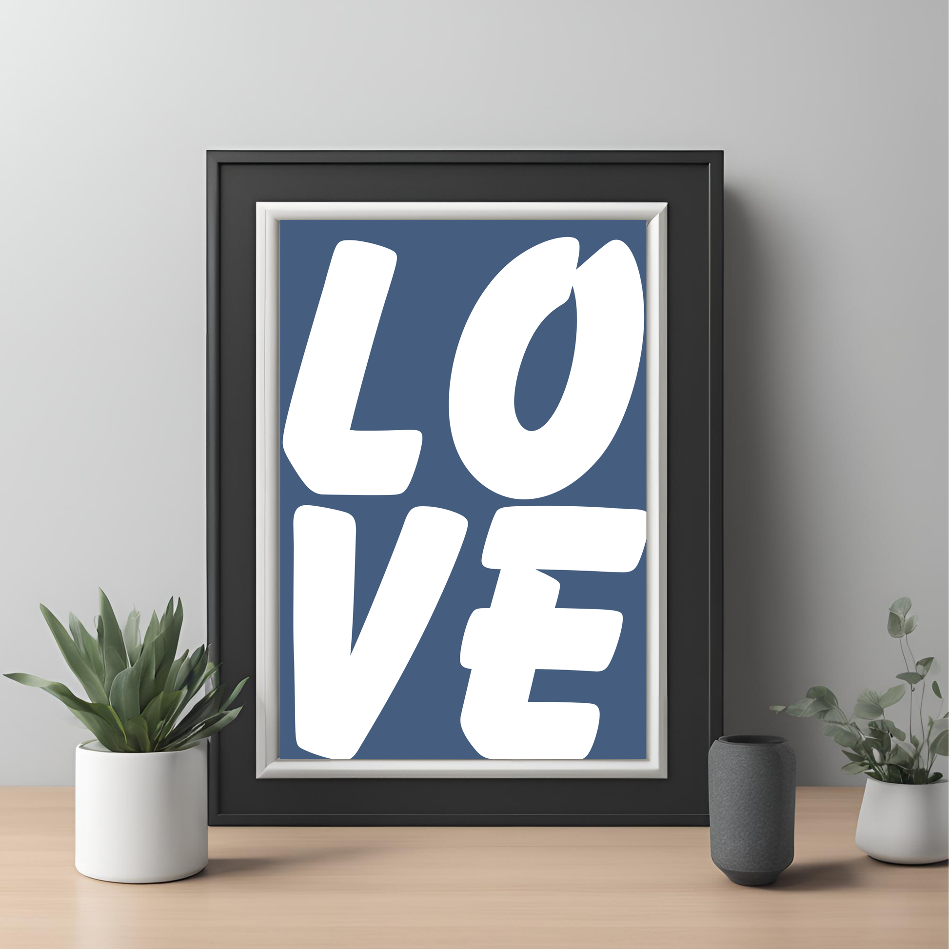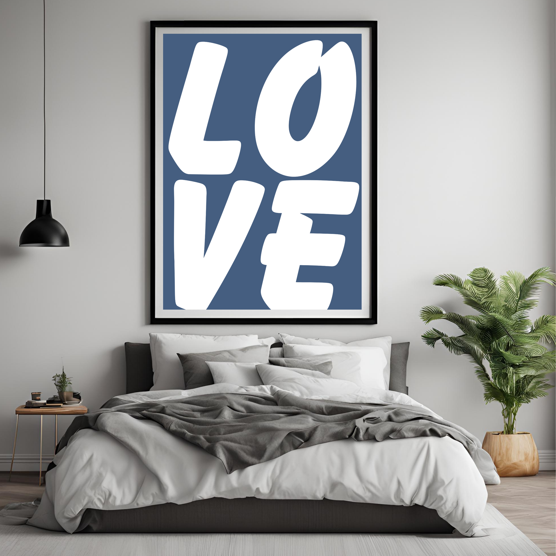 Minimalist Love Design in Blue: The print showcases a simple, yet striking, love-themed graphic in shades of blue. The cool tones add a calming and peaceful vibe, while the design remains meaningful and elegant.