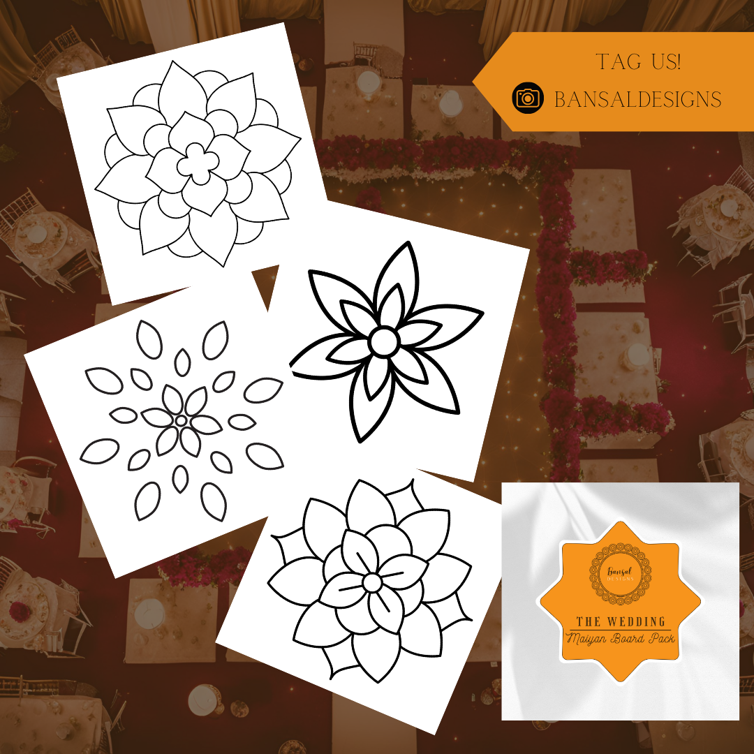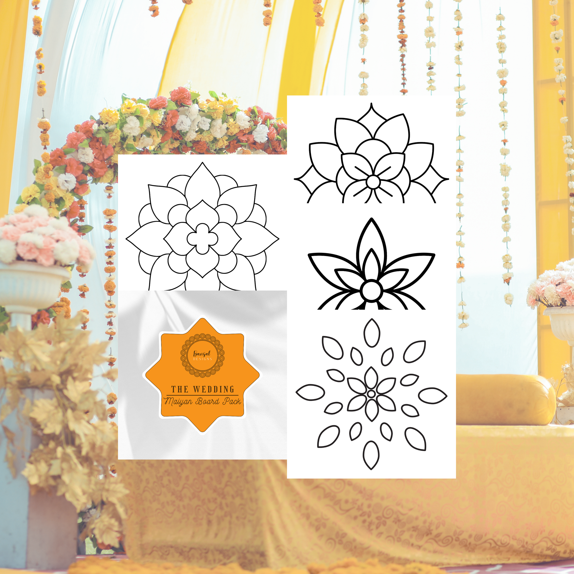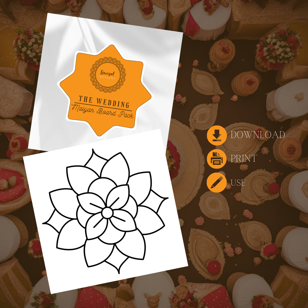 Elevate your Punjabi wedding with our stunning Maiyan Pattern Pack of 4 digital printables. These beautiful designs are perfect for creating a memorable Maiyan ceremony or a vibrant Rangoli display, adding a touch of tradition and elegance to your wedding event.