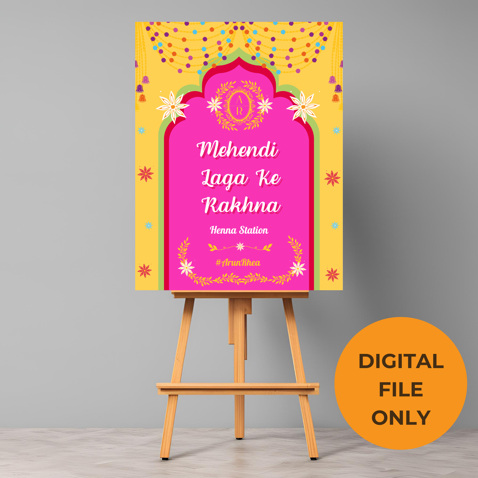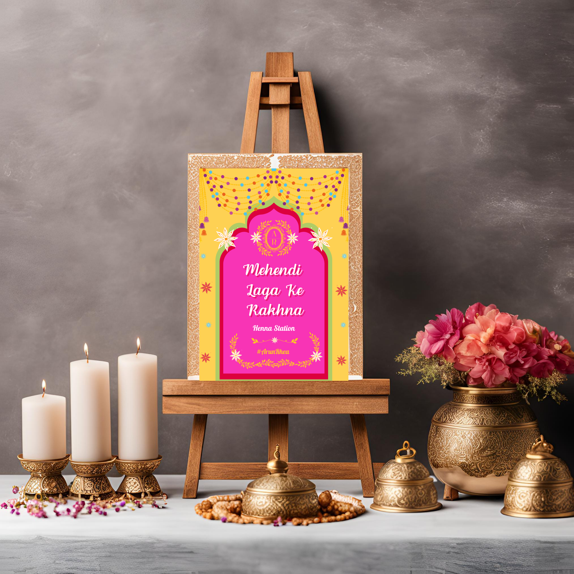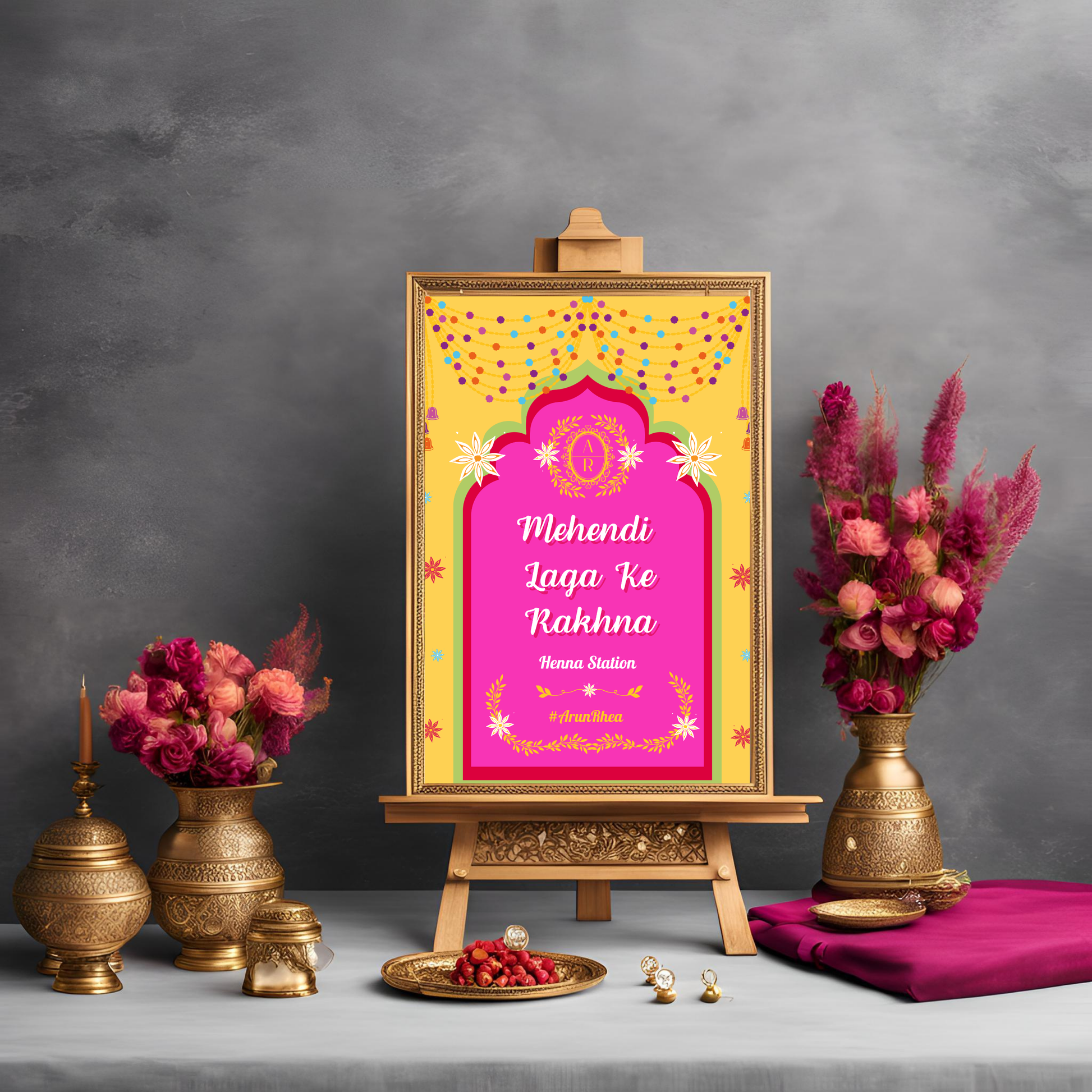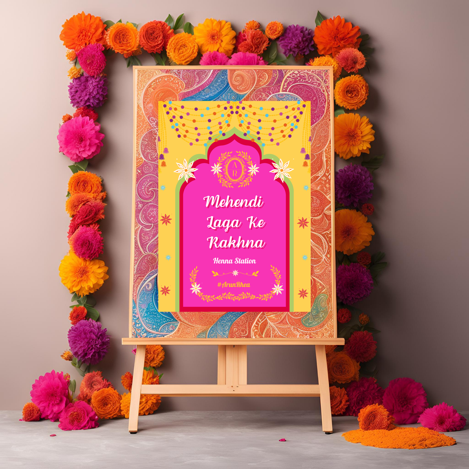 Bring the magic of Bollywood and wedding traditions to life with this Mehendi Laga Ke Rakhna Entrance Sign. Instant download, easy customization, and stunning quality—get yours today!