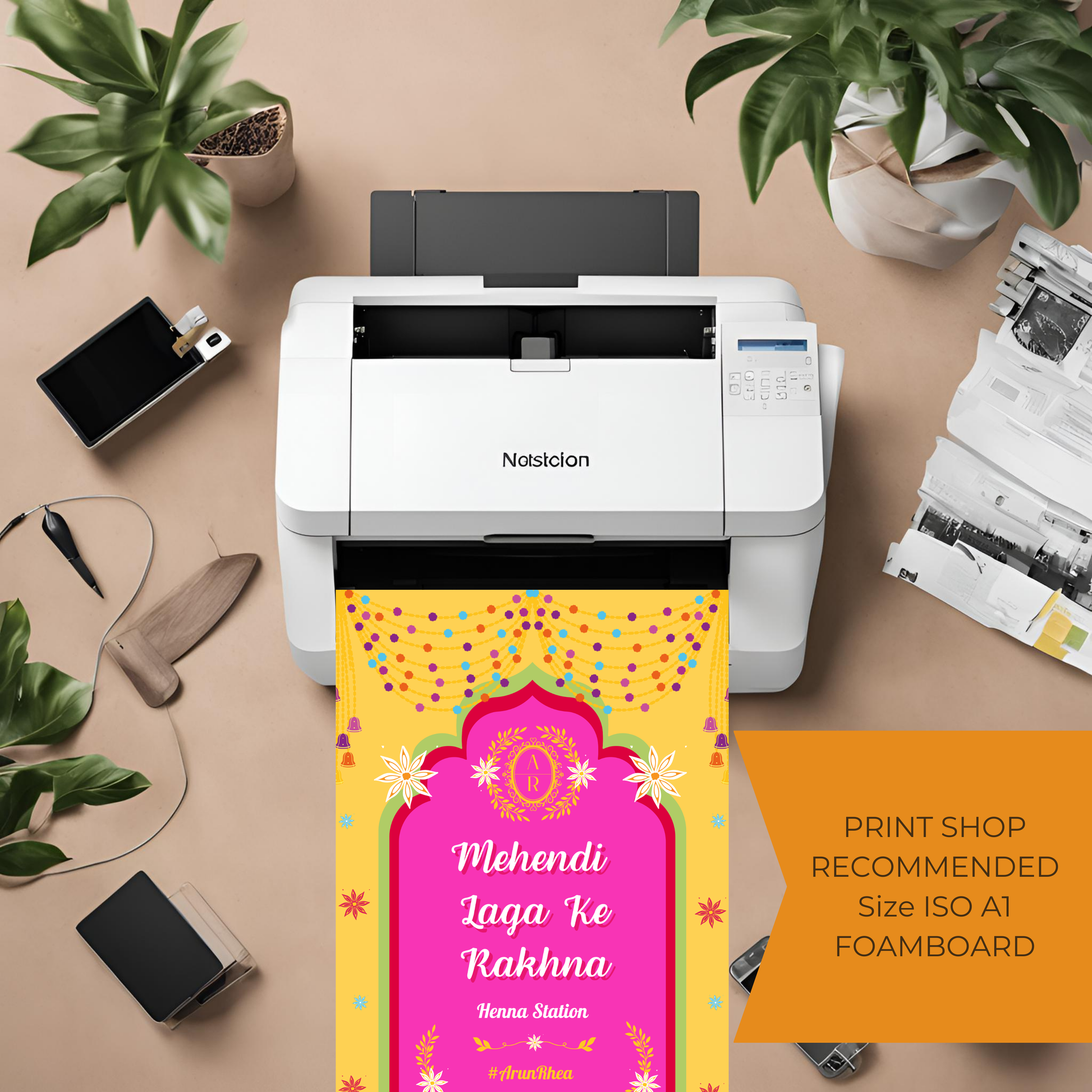Add a touch of Bollywood romance and tradition to your Mehndi night, Sangeet, or Indian/Pakistani wedding with this Mehendi Laga Ke Rakhna Entrance Signage! Inspired by the iconic wedding song, this editable digital templatebrings a fun and celebratory vibe to your event decor. Designed in ISO 420 x 594 mm (A2) at 300 DPI, this signage ensures high-quality printing and can be resized to fit all ISO sizes perfectly.