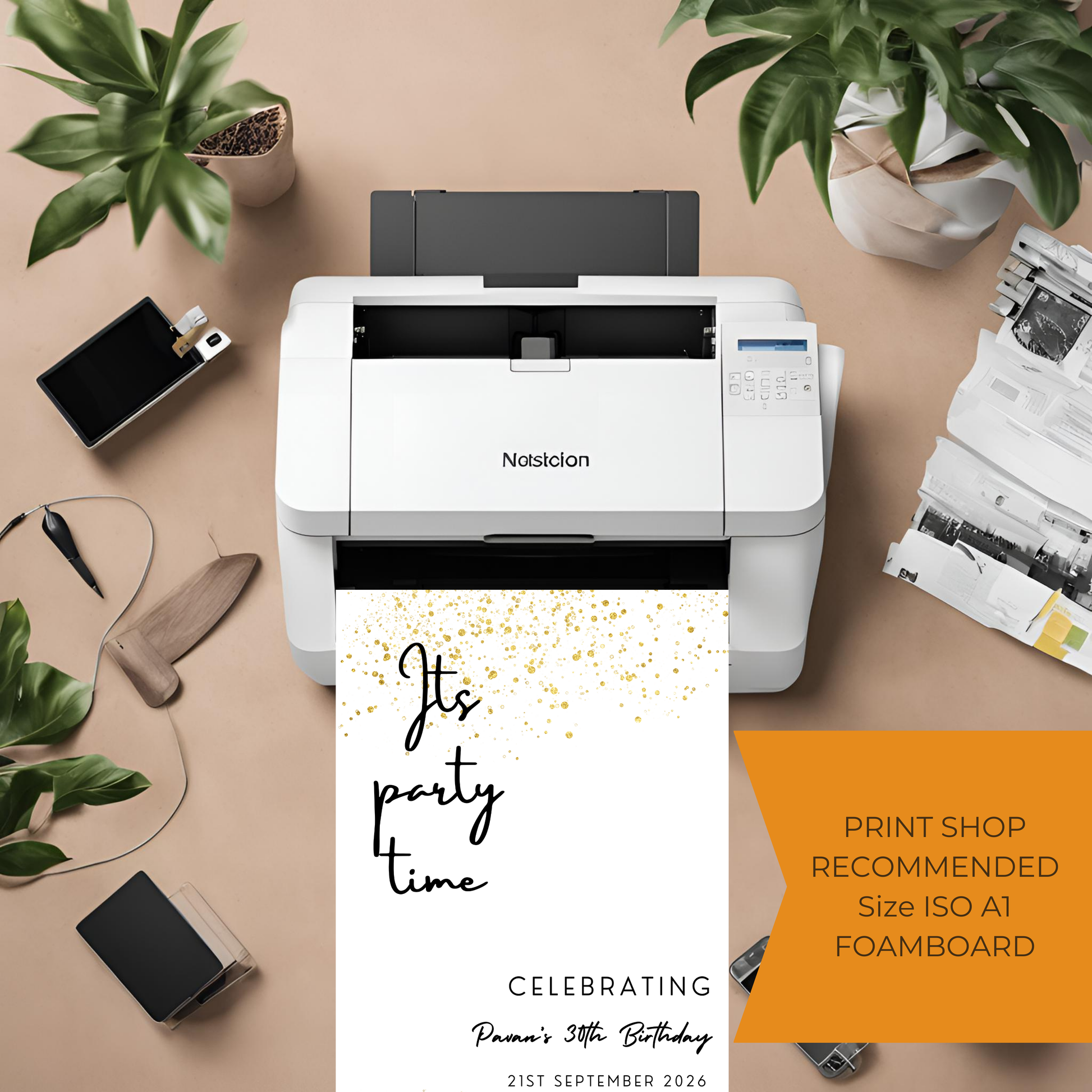 - Multiple Size Options – Available in ISO A1 (23.4 x 33.1 inches) and A2 (16.5 x 23.4 inches), this sign works beautifully as a bold party display.