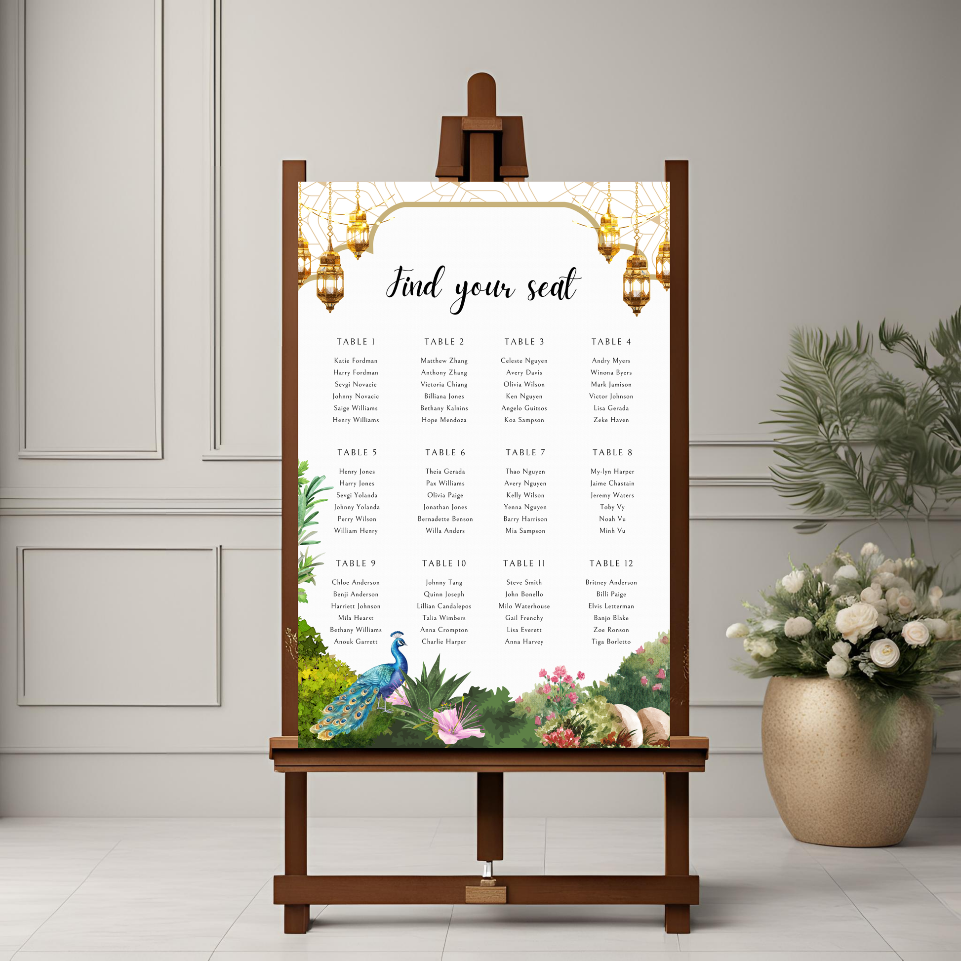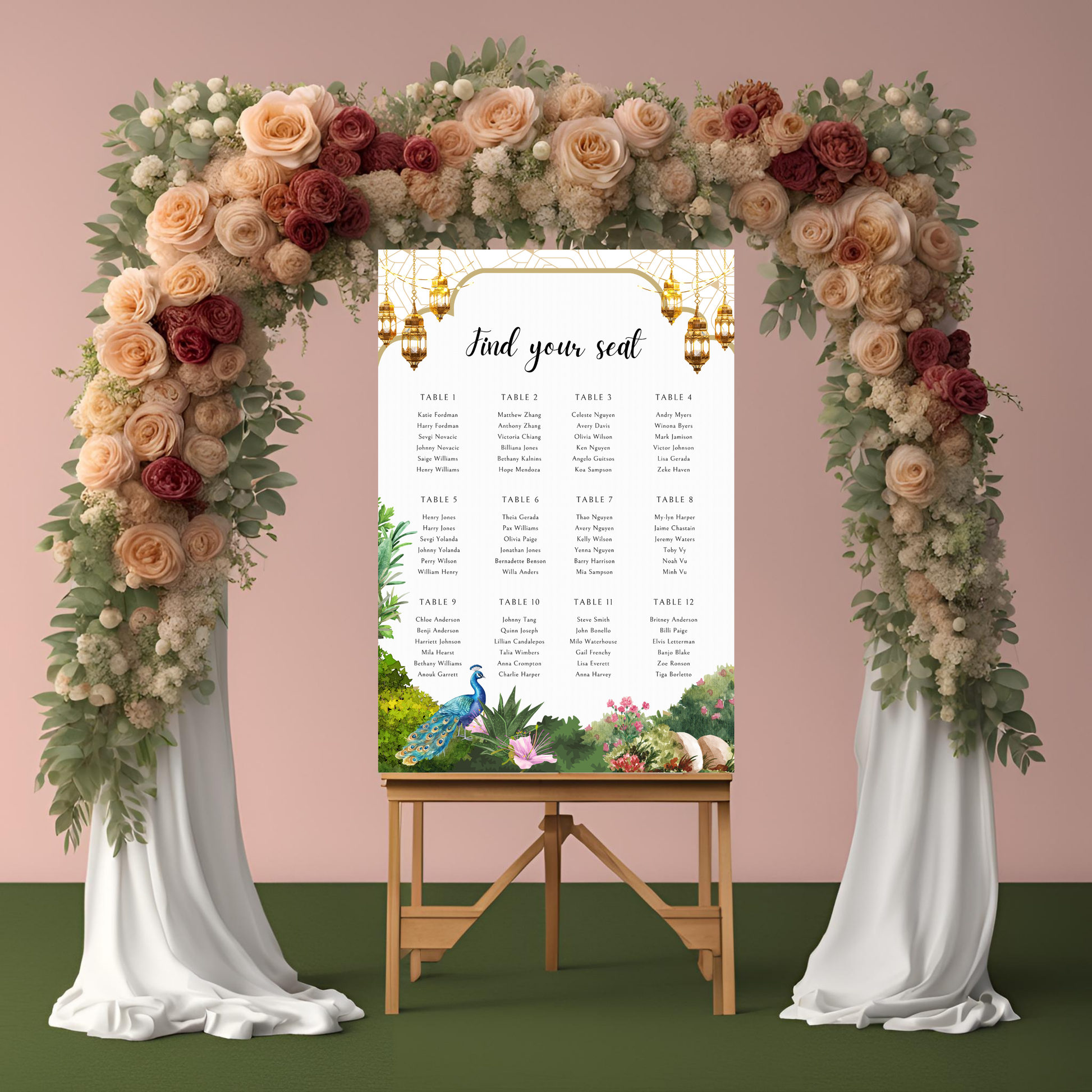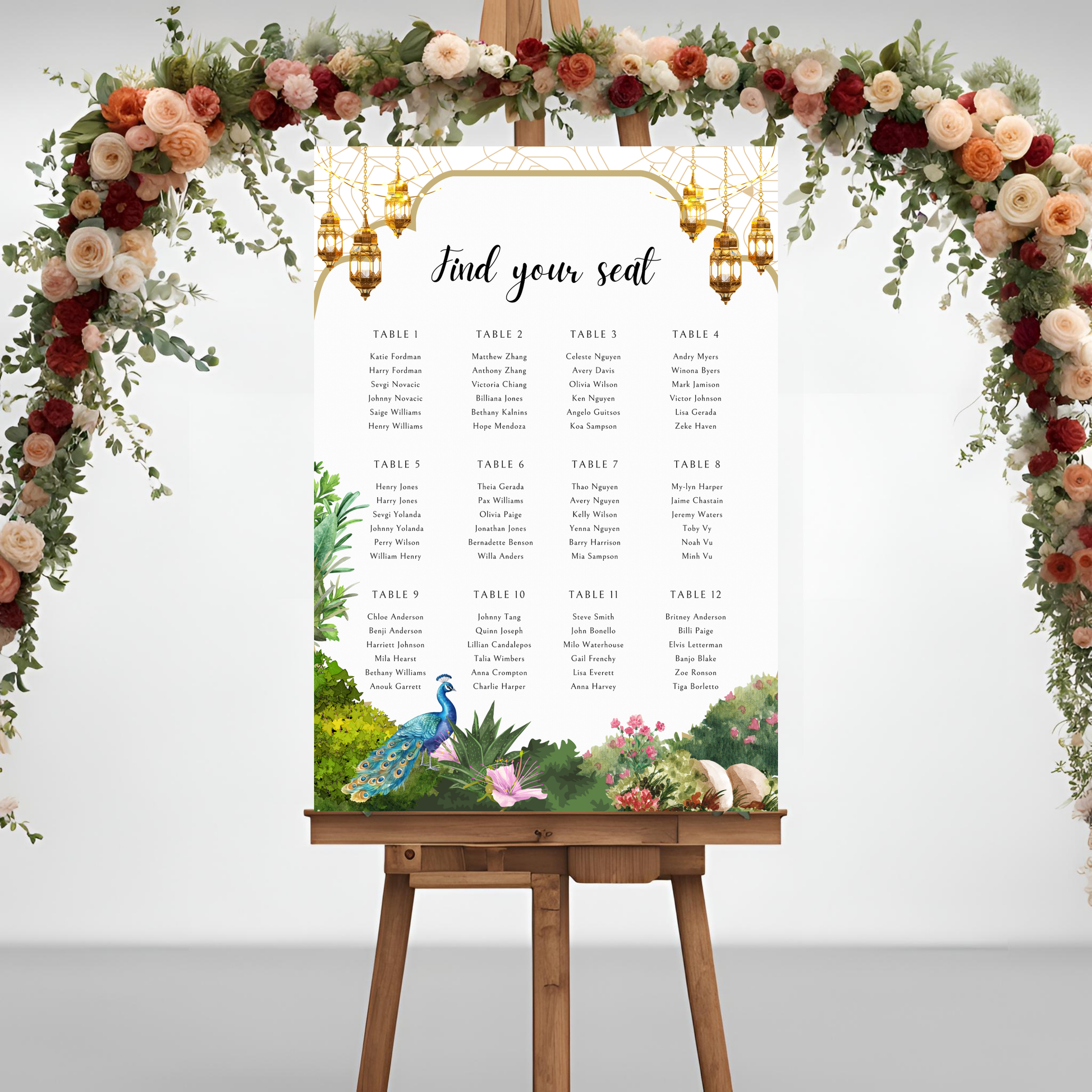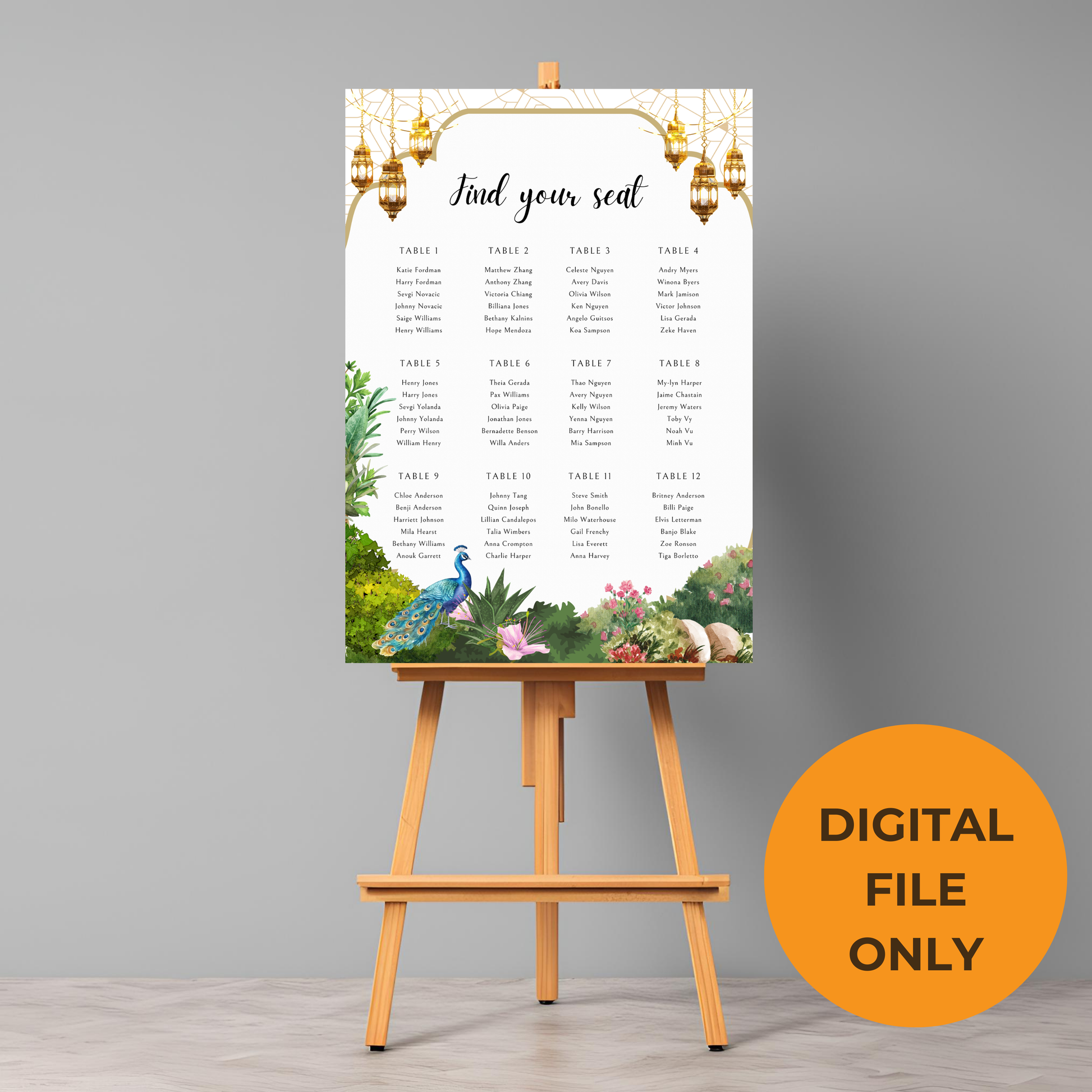 Peacock Garden Seating Plan Digital Download - Wedding Seating Chart Template
