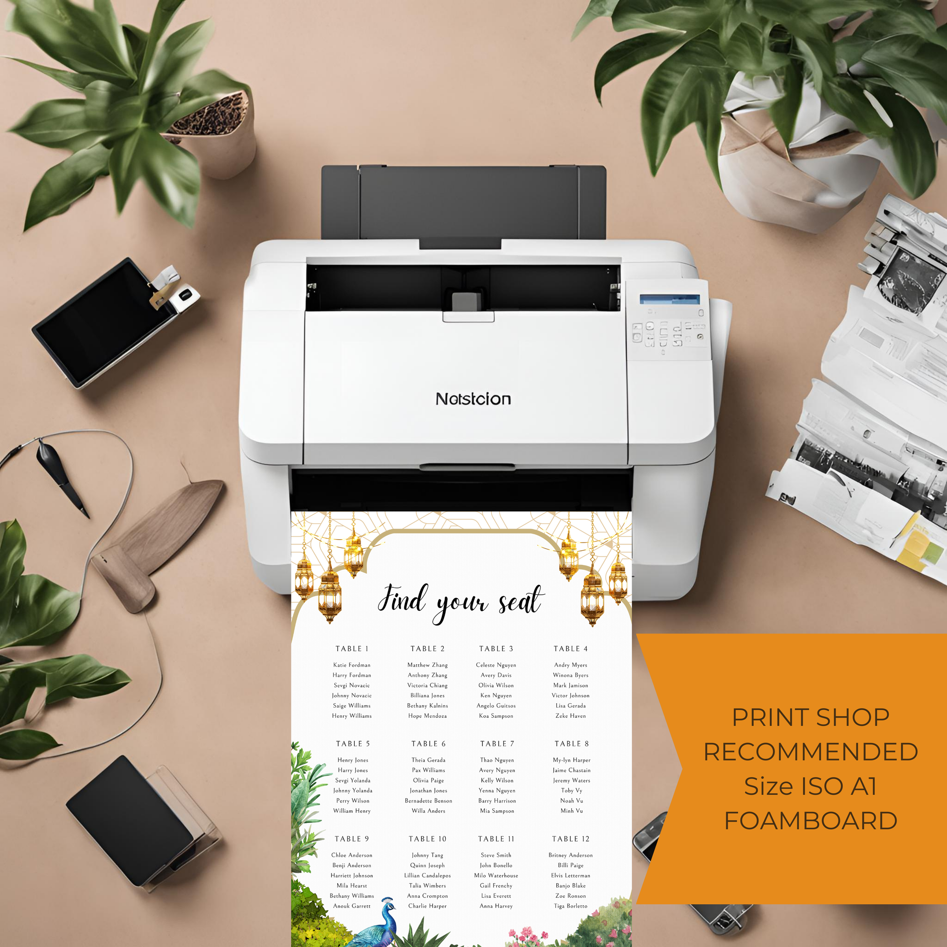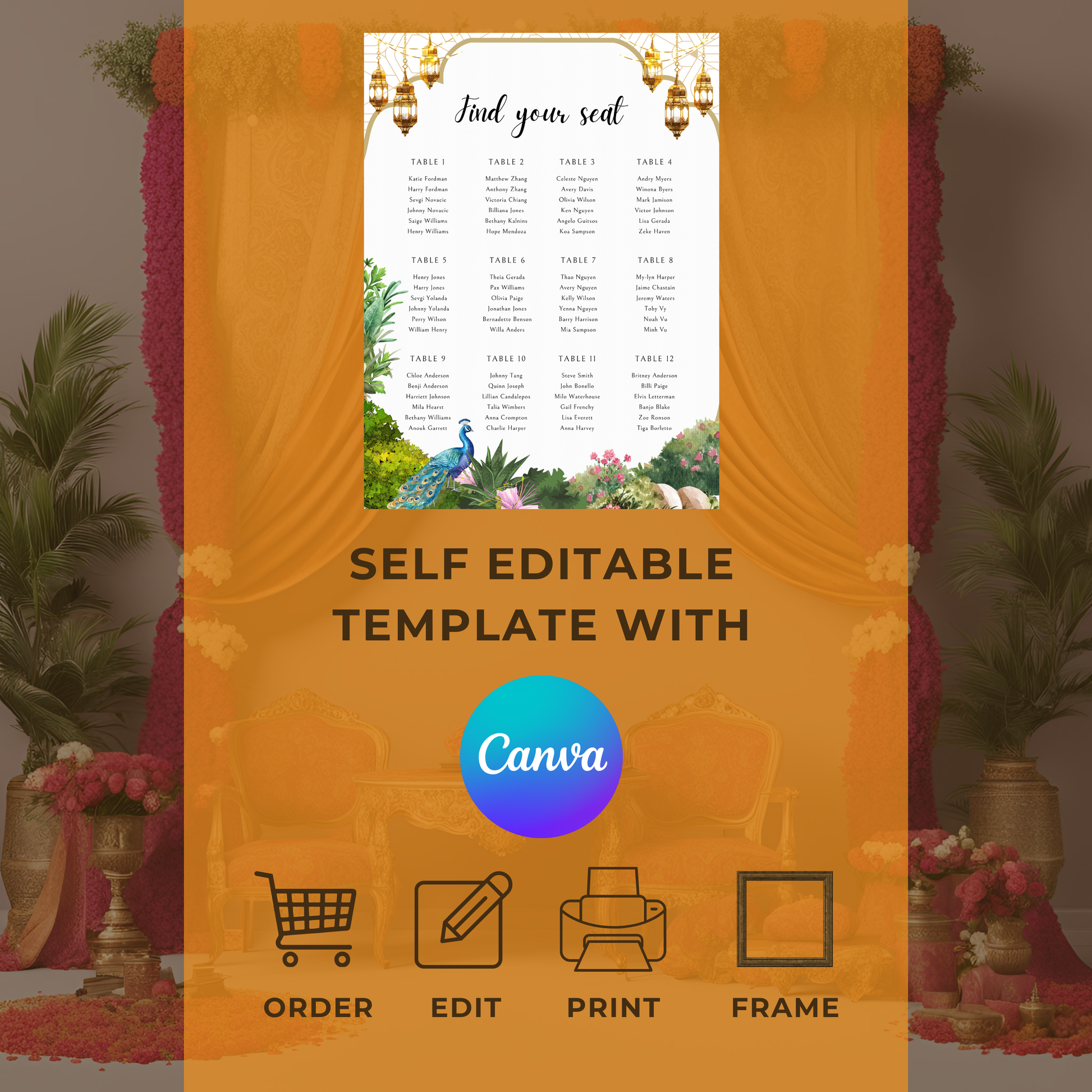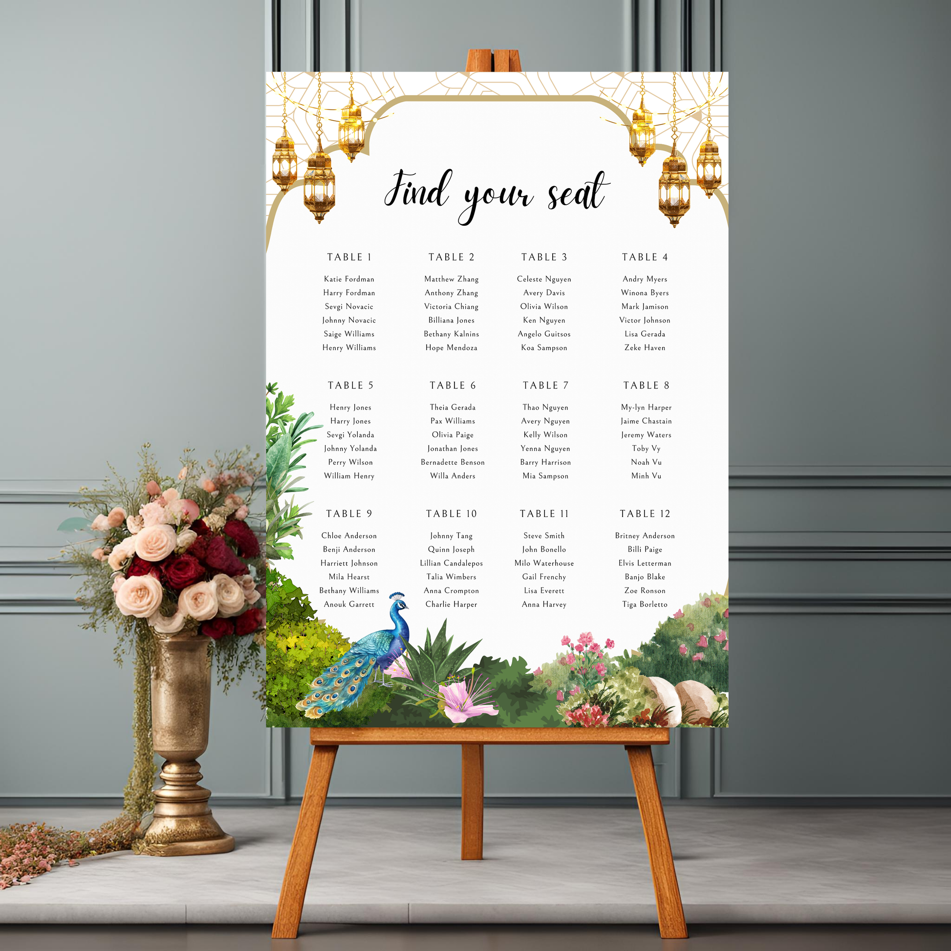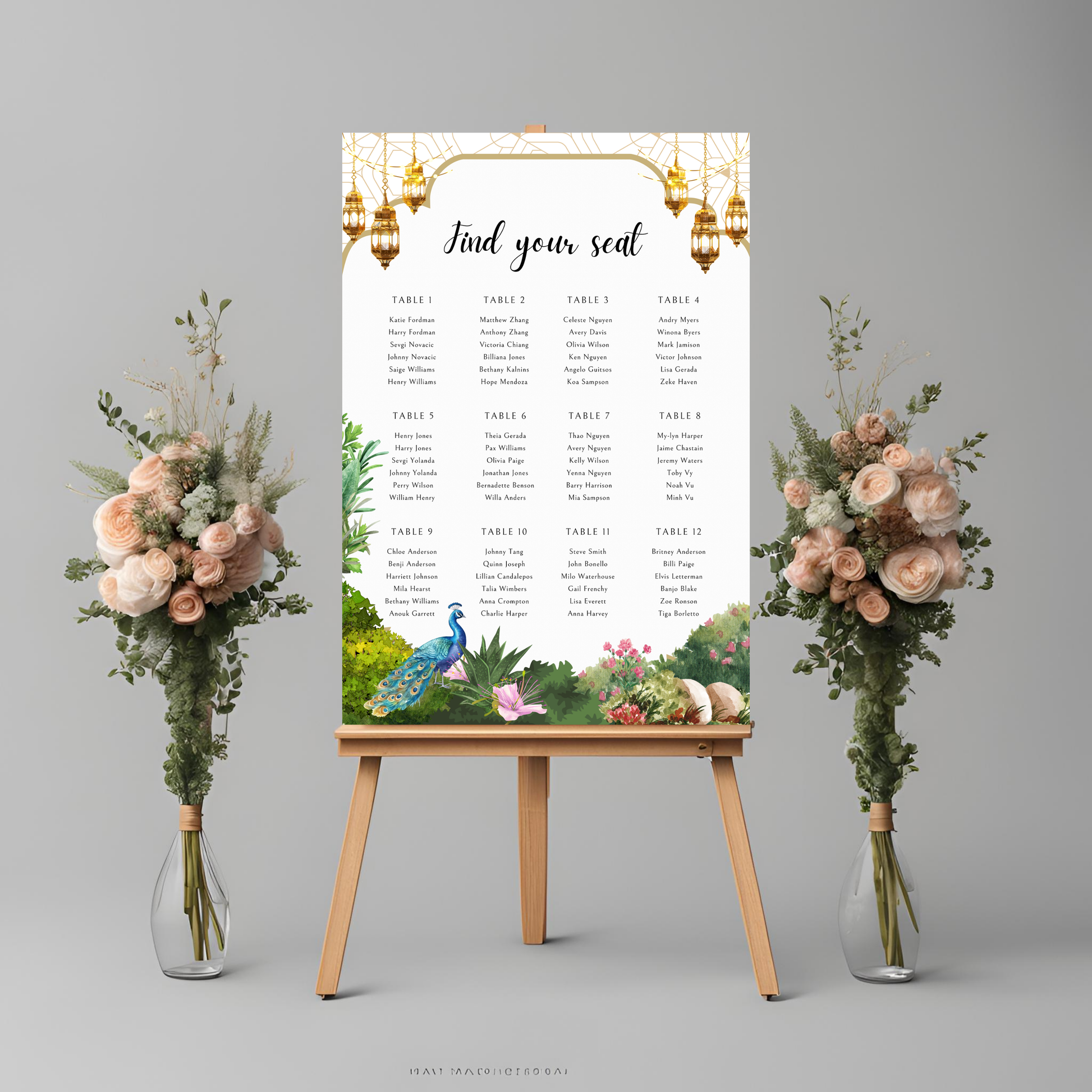 Peacock Garden Seating Plan Digital Download - Wedding Seating Chart Template