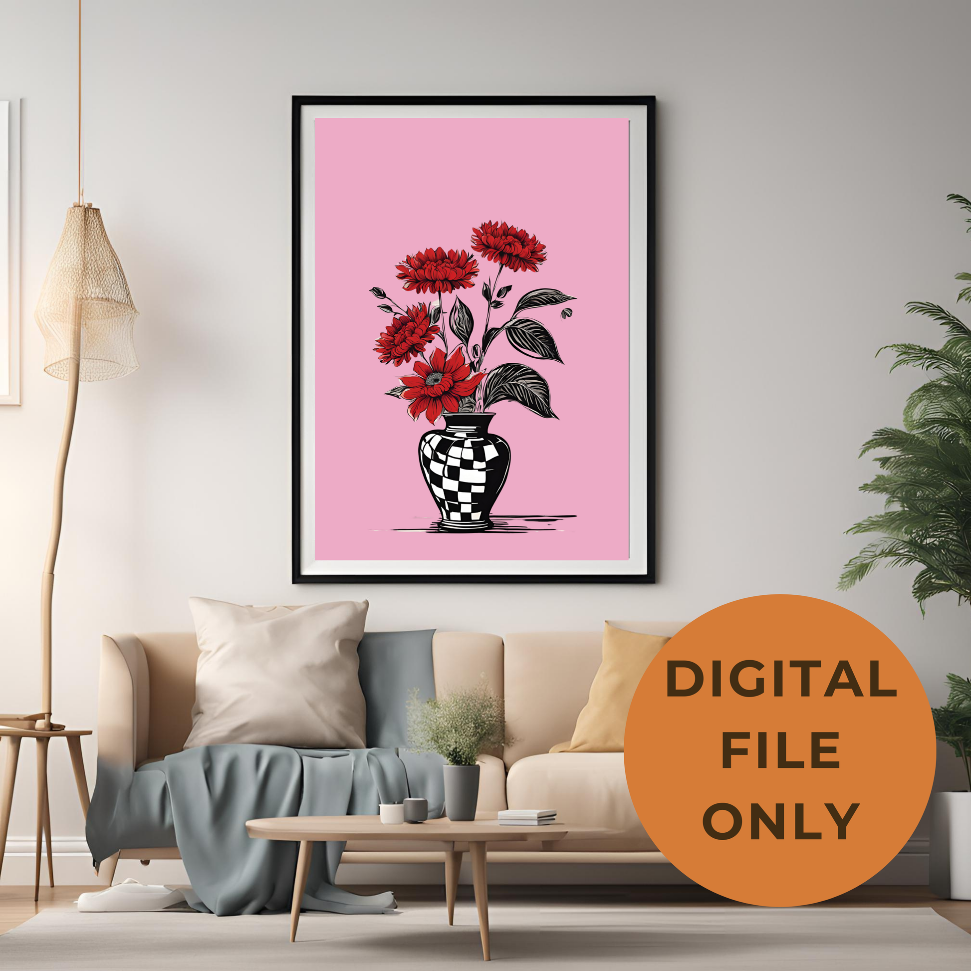Add a Contemporary Touch to Your Space: The "Pink Checkered Vase Wall Art Digital Download" brings a playful, modern vibe to your home. With its fresh design and customizable print options, it's the perfect addition to brighten up any room with a pop of color and geometric style.