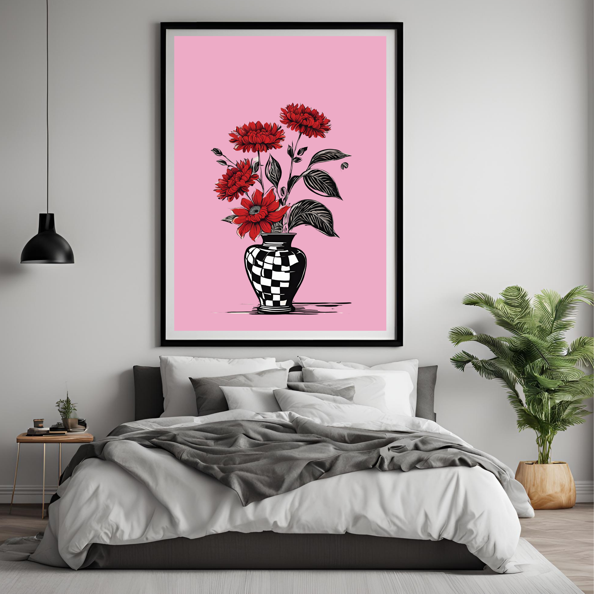 Perfect for Living Rooms, Bedrooms, or Modern Spaces: The "Pink Checkered Vase Wall Art" is perfect for adding a touch of modern elegance to living rooms, bedrooms, or any contemporary setting. Its cheerful design brightens up any room with ease.