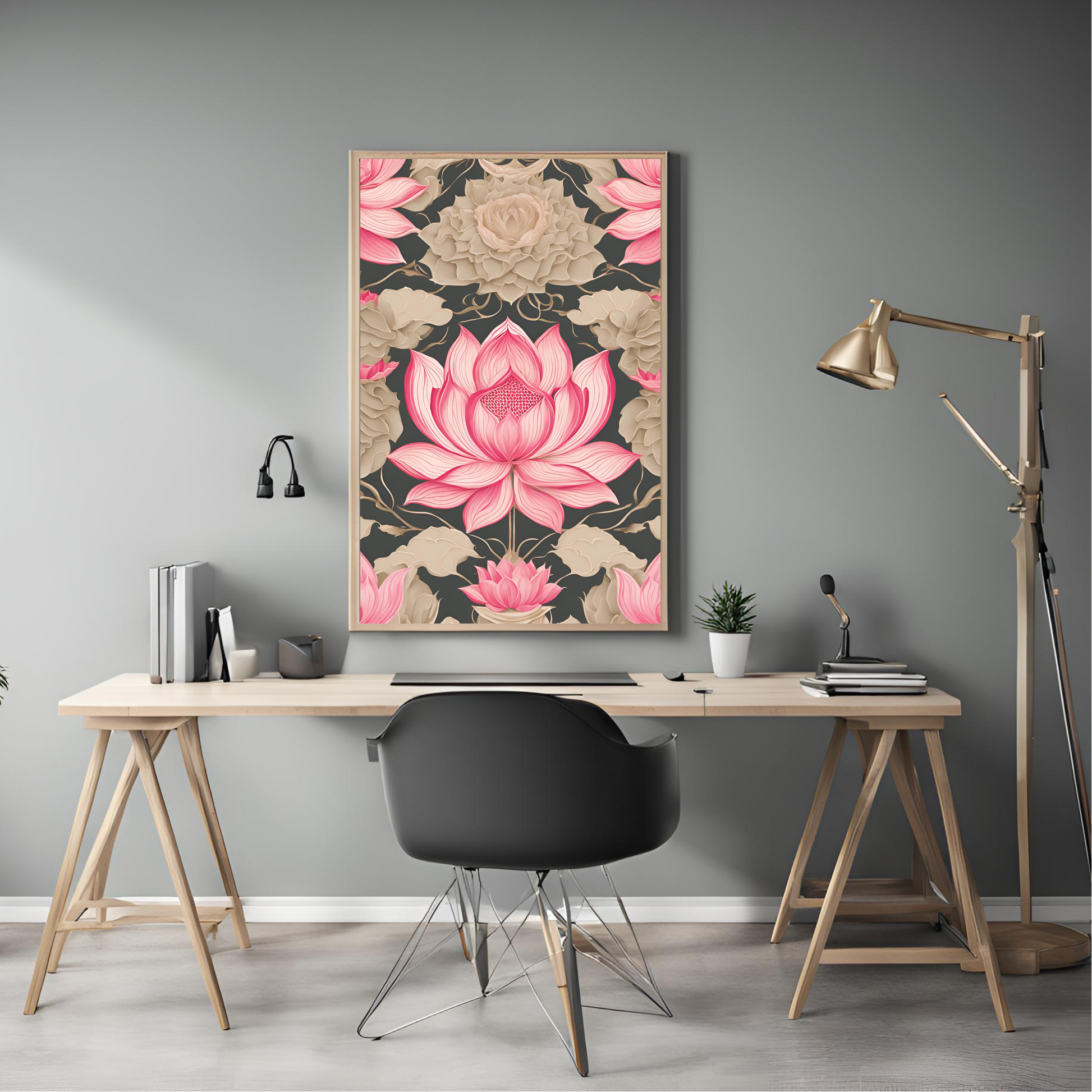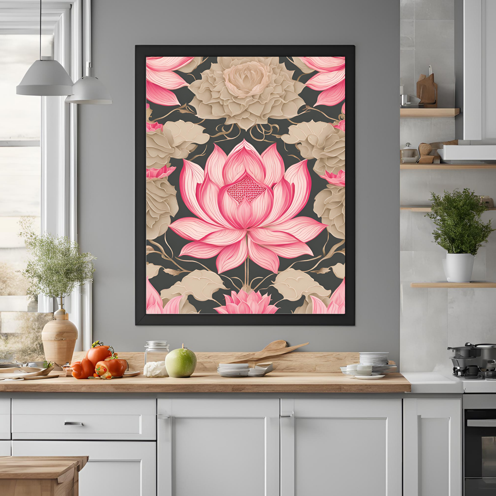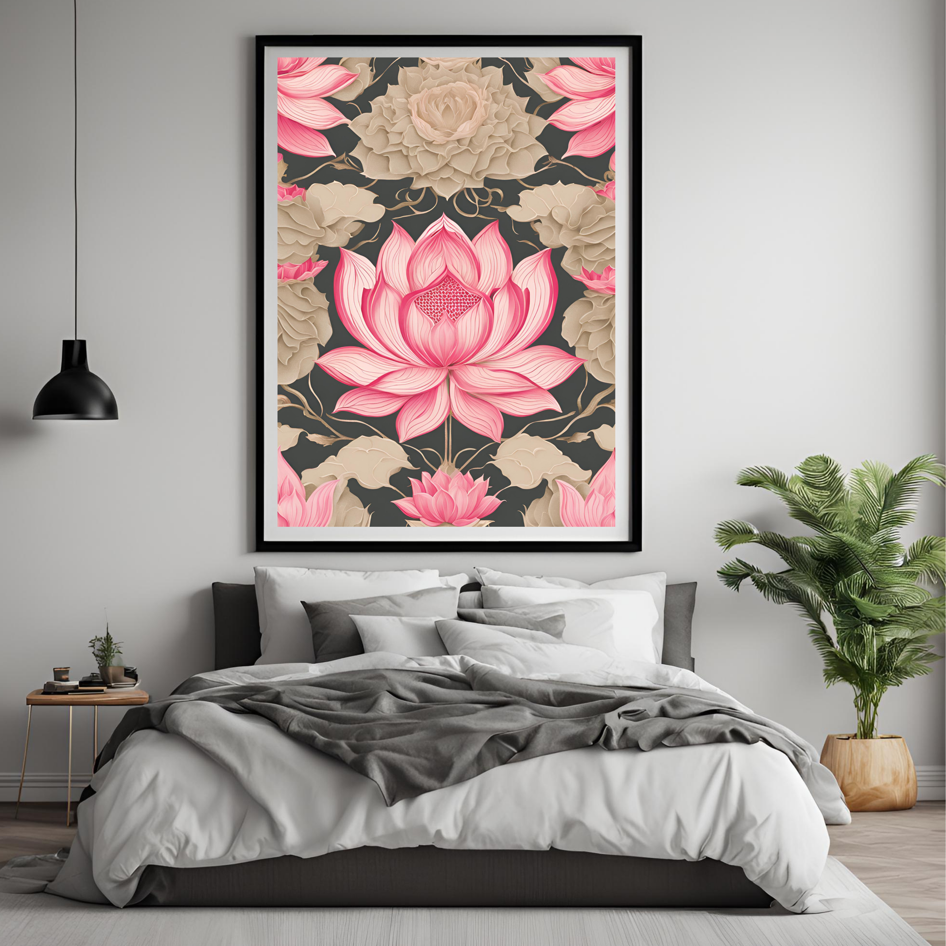 Traditional Folk Art Design: The print showcases the lotus in full bloom, intricately designed in traditional folk art style. The delicate petals and vibrant details symbolize peace, beauty, and spiritual growth, making it a meaningful and eye-catching addition to any room.