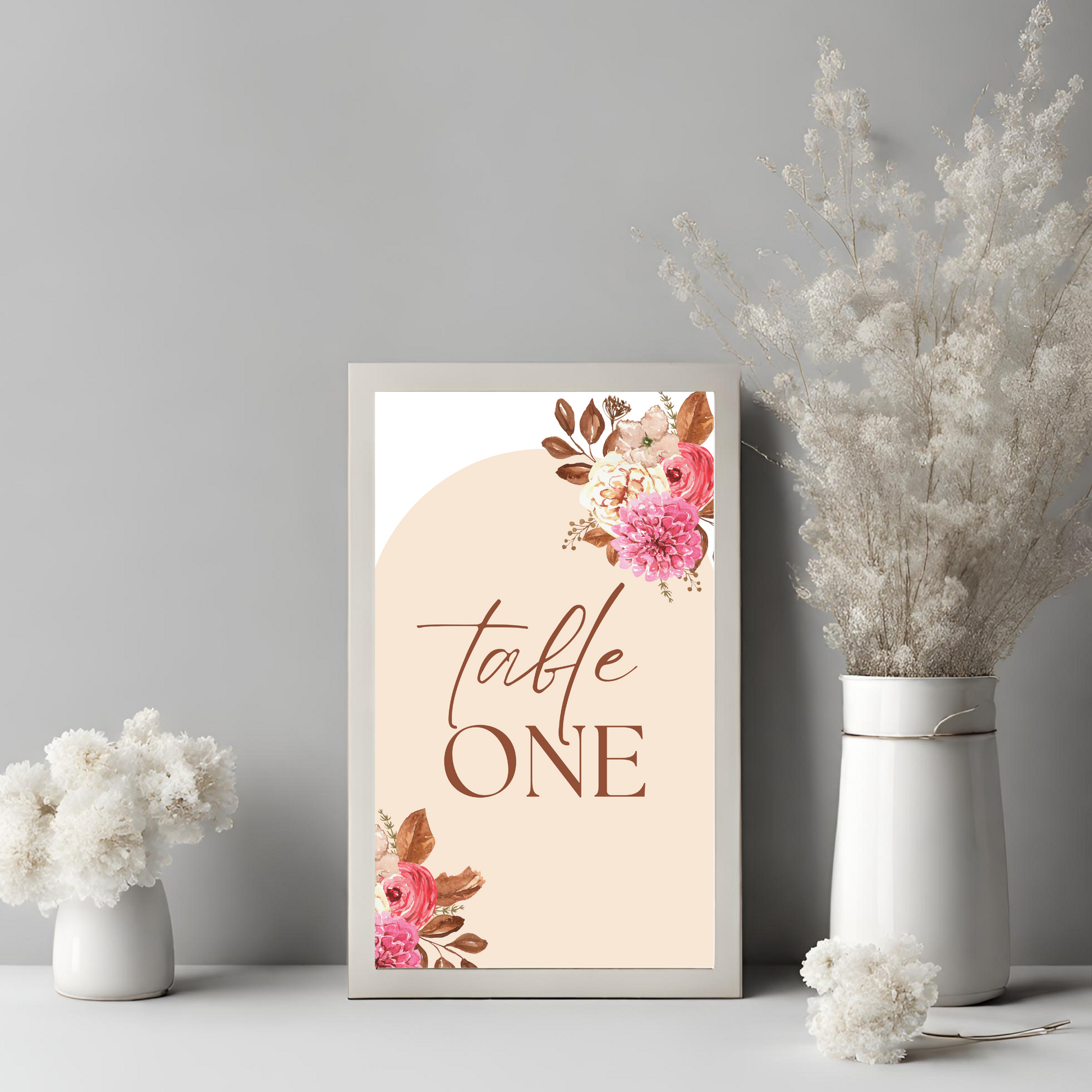 Pink Peach Table Number Digital Download - Elegant Wedding Table Number Template
