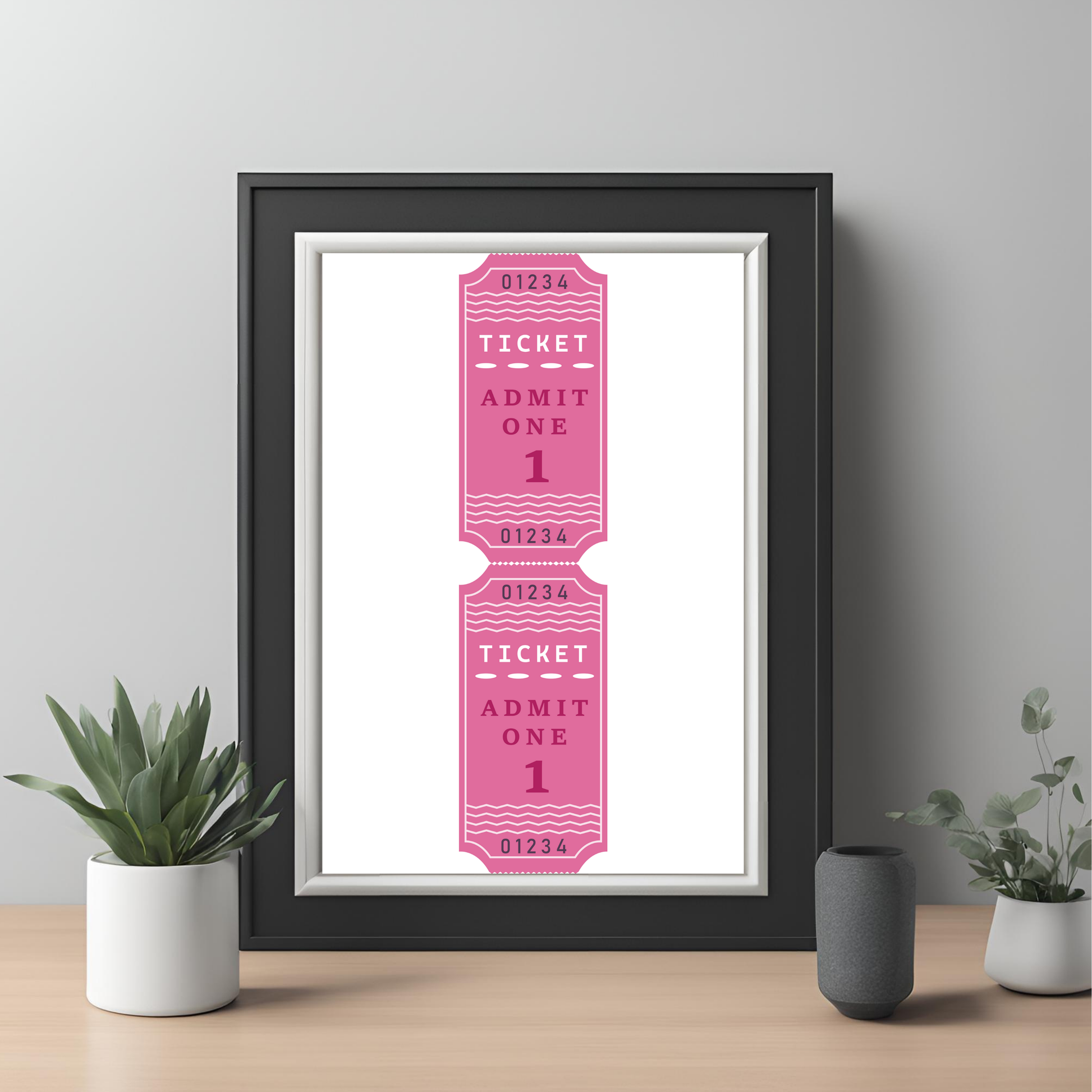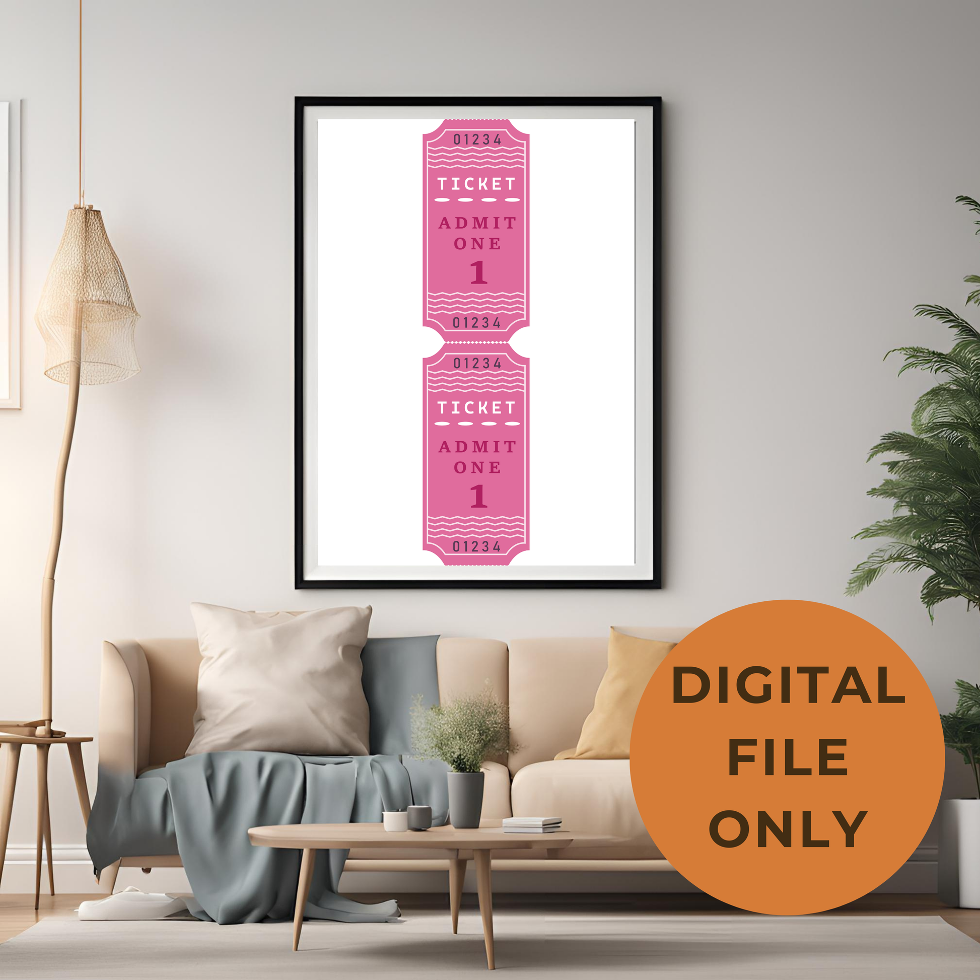 Add a Pop of Fun to Your Space: The "Pink Ticket Stub Wall Art Digital Download" is an easy and stylish way to bring a retro, playful vibe to your decor. With customizable print sizes and vibrant design, it’s the perfect addition to any room in need of a cheerful and nostalgic touch.