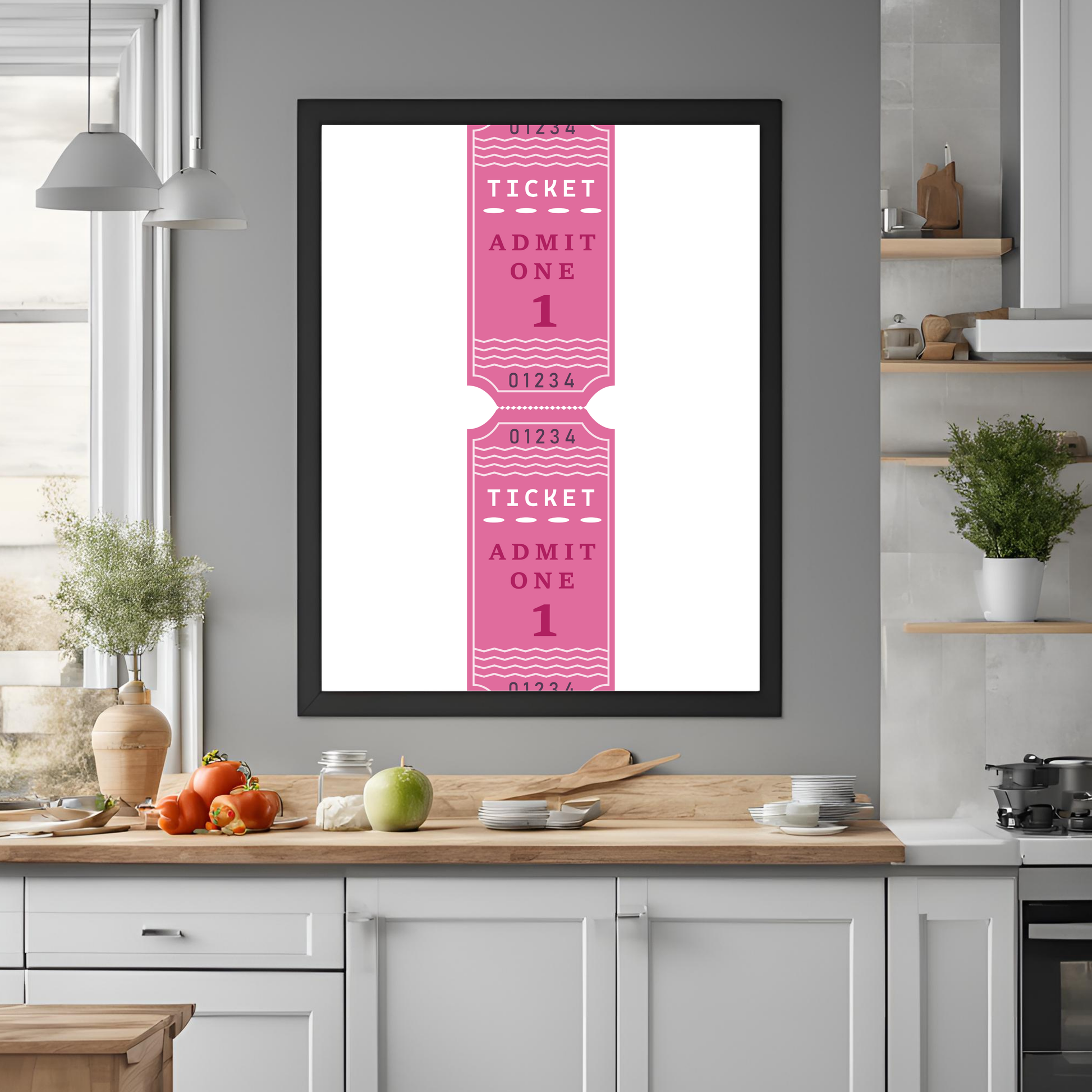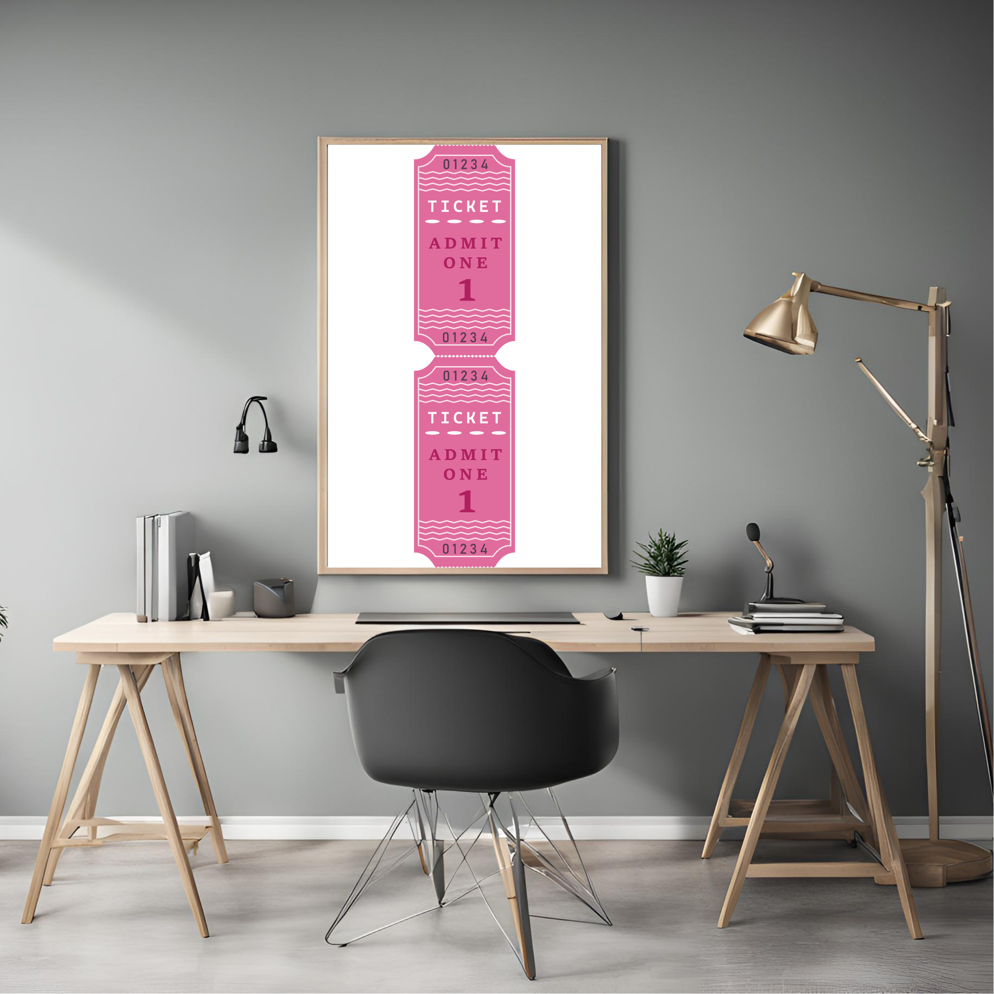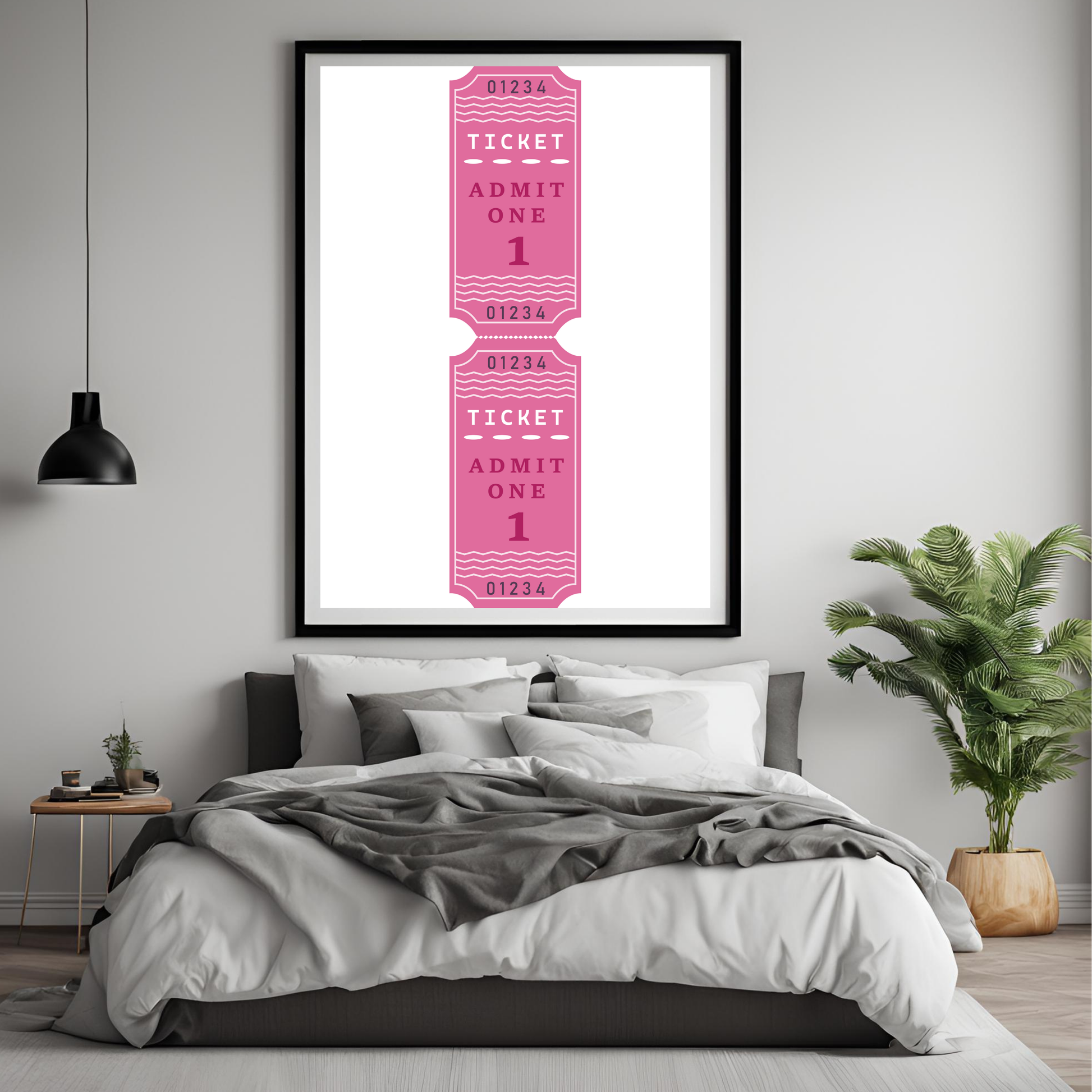 Vintage-Inspired Ticket Stub Design: The artwork features a bold, pink ticket stub design that evokes feelings of nostalgia and adventure. Its retro charm makes it a great choice for adding a fun, modern twist to any room.