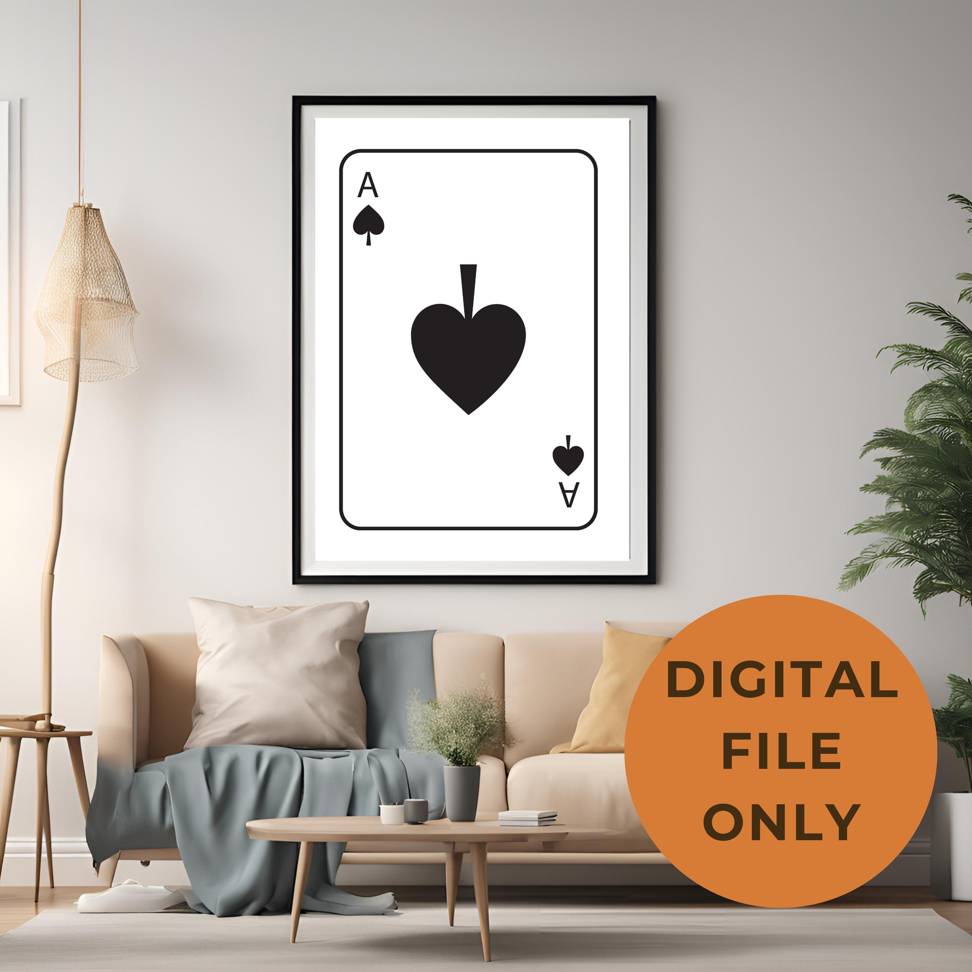Add Playful Charm to Your Space: The "Playing Card Wall Art" is the perfect way to bring a fun, modern touch to your home. With its bold design and customizable print sizes, this instant download adds both personality and style to your decor.