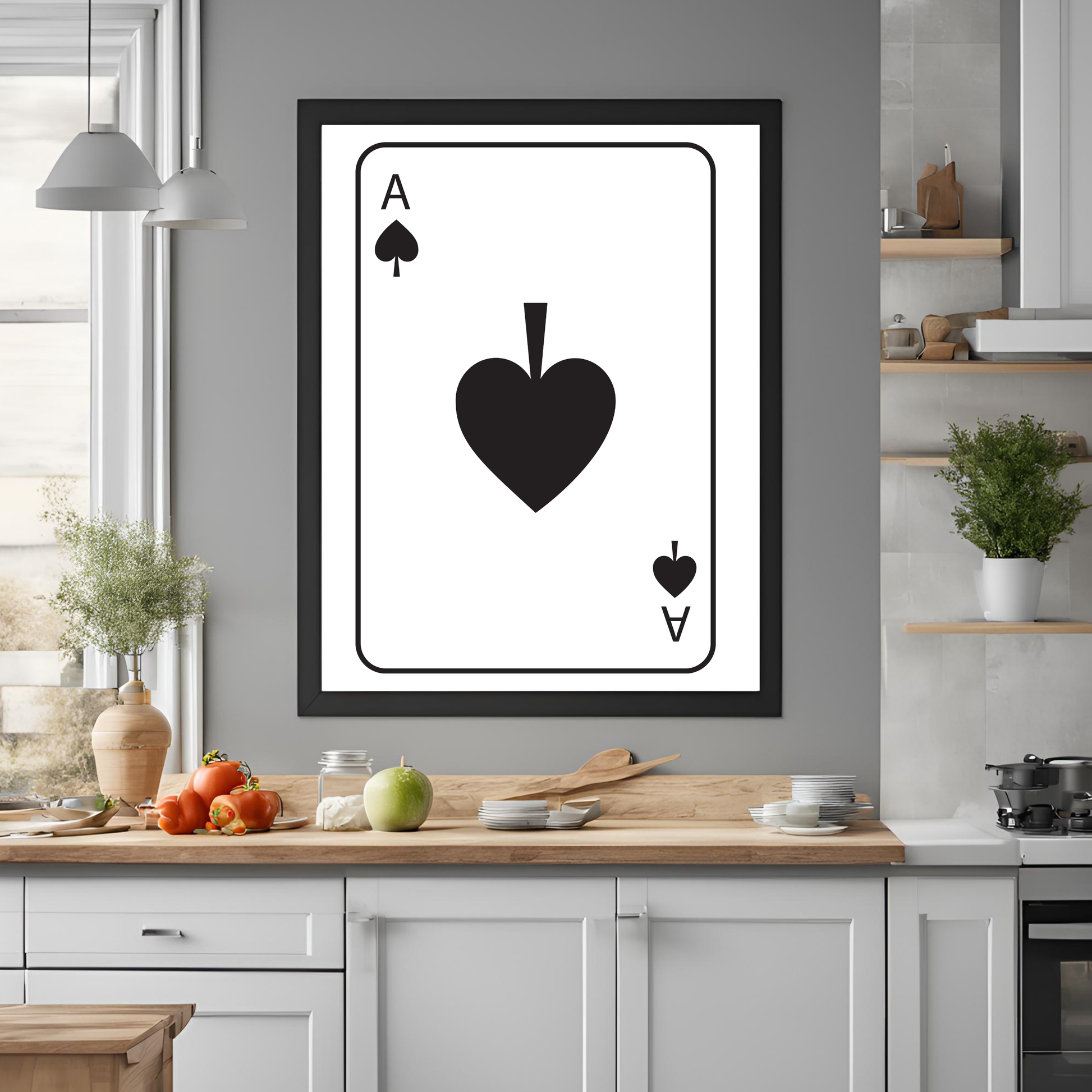 Iconic Playing Card Design: The artwork features a modern, stylish interpretation of playing cards, bringing a vibrant and fun energy to your space. Its bold design makes it a great conversation starter and a unique addition to any room.