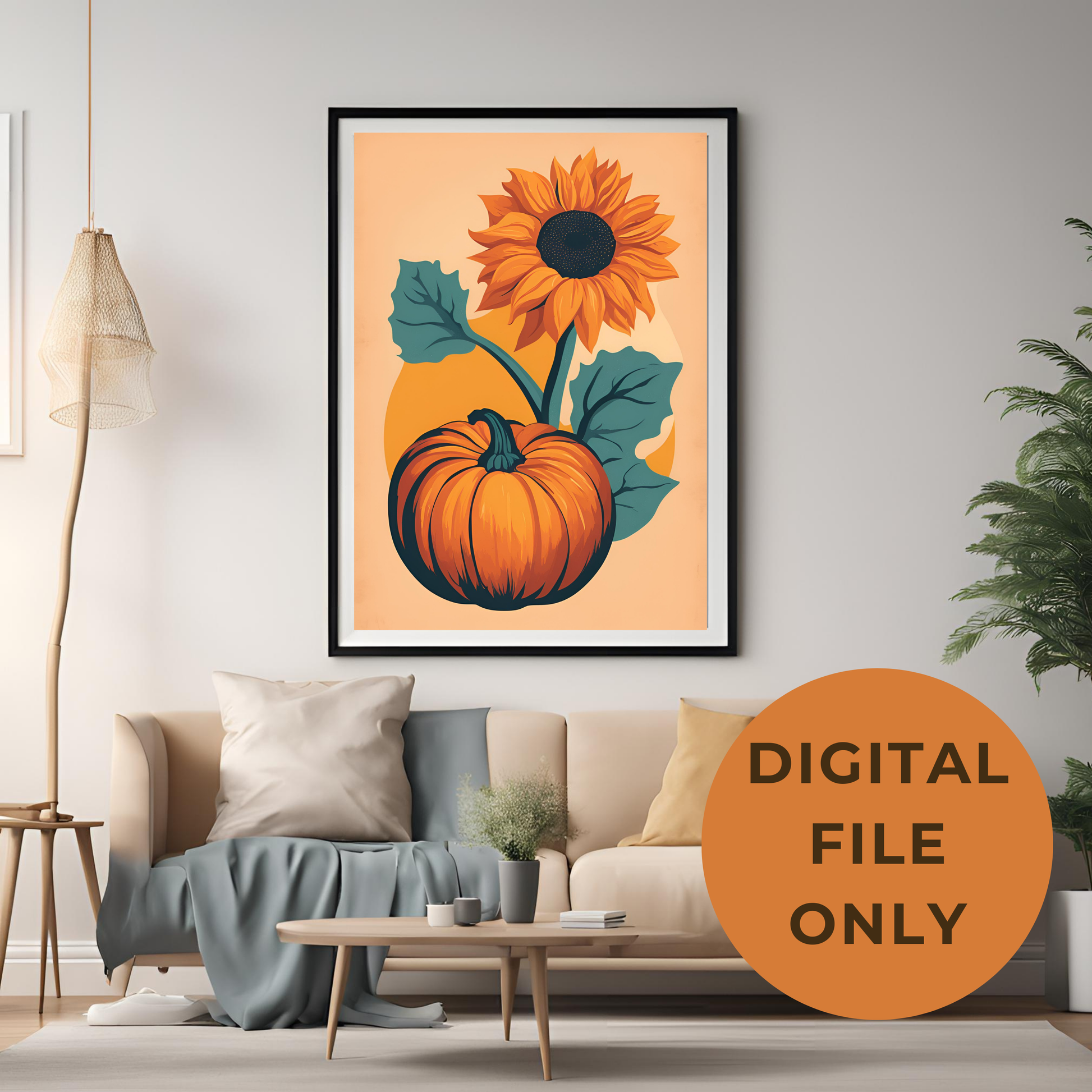 Celebrate the Beauty of Fall: The "Pumpkin and Sunflower Orange Wall Art Digital Download" brings the vibrant colors of the season into your home. With its rich design and customizable print options, this instant download is the perfect way to add warmth and charm to your fall decor.