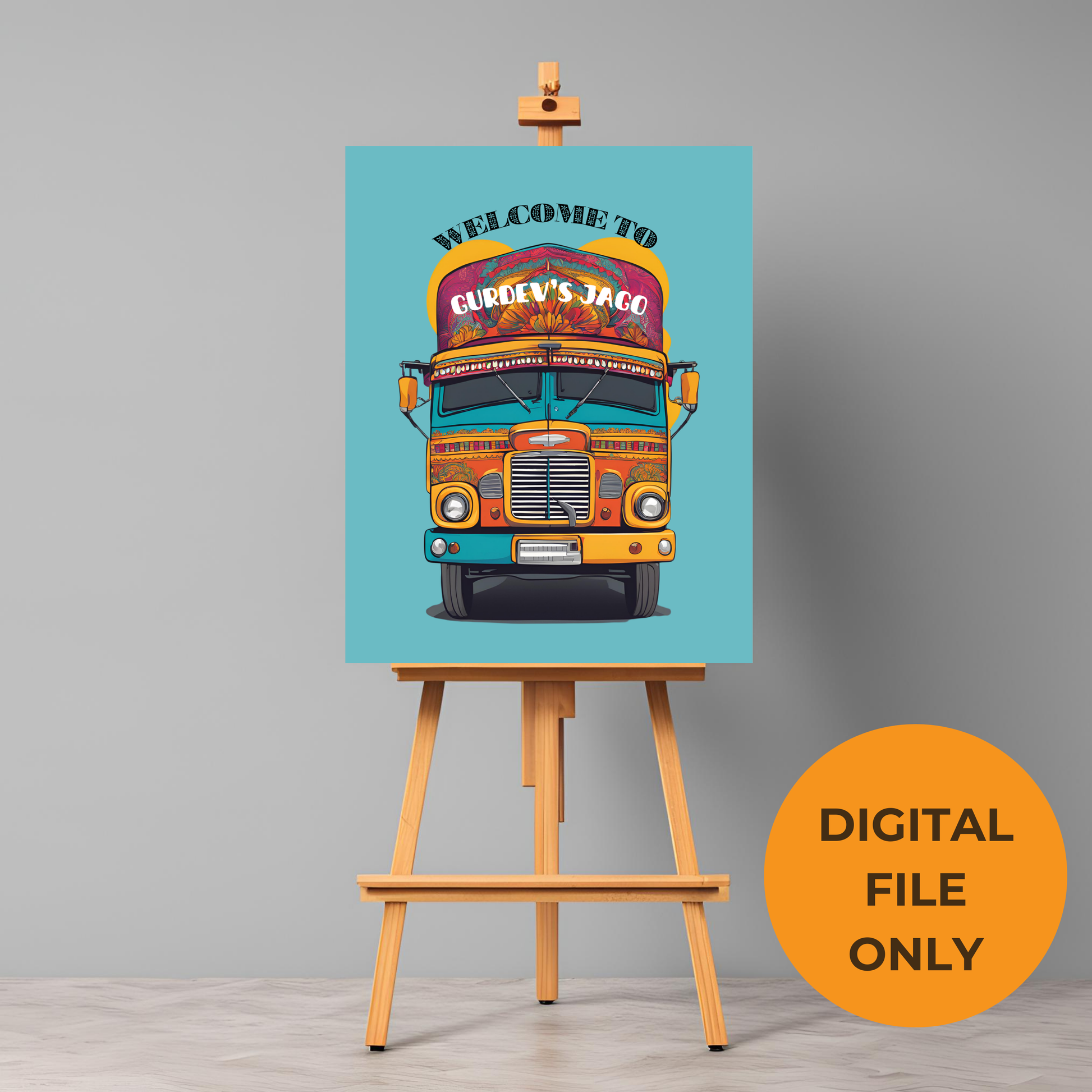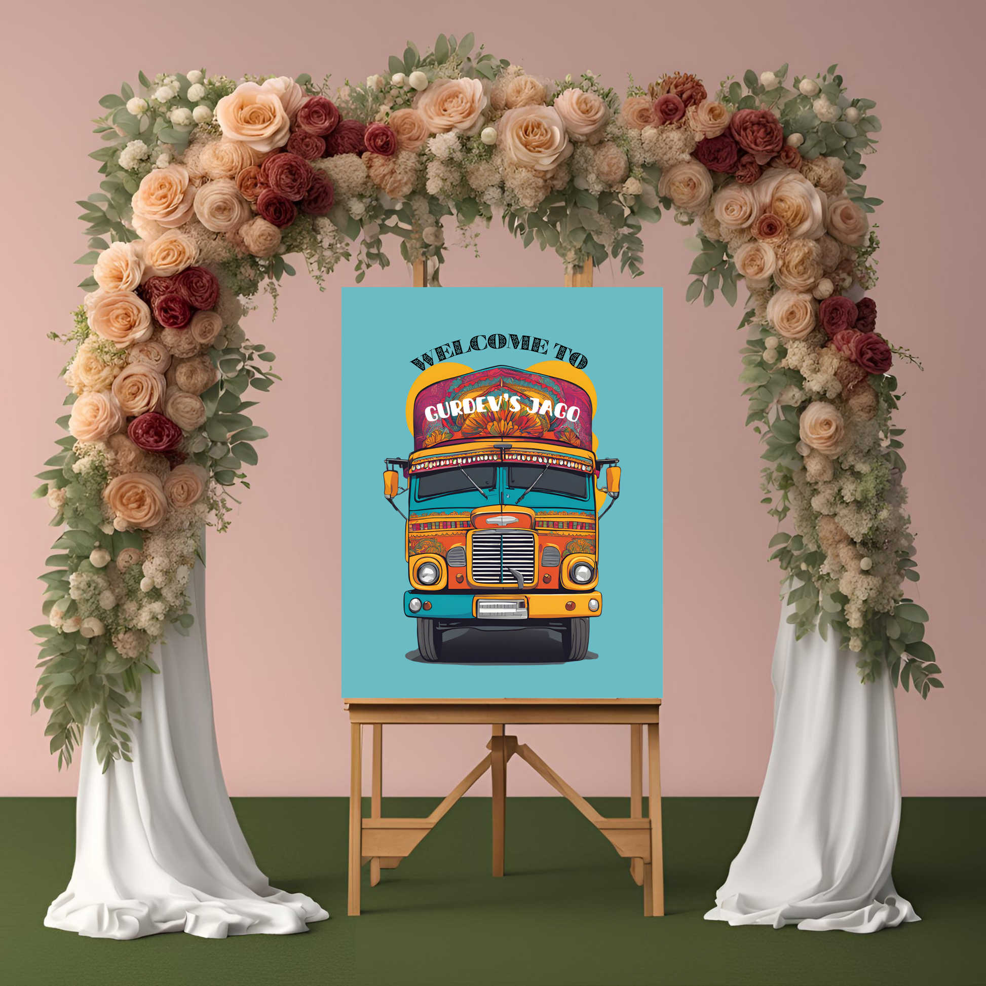 The Punjabi Truck Entrance Board Digital Download is a fun, vibrant way to bring a touch of Punjabi truck art tradition to your event. Its lively design makes for a memorable welcome sign, setting the tone for a colorful, joyful celebration.