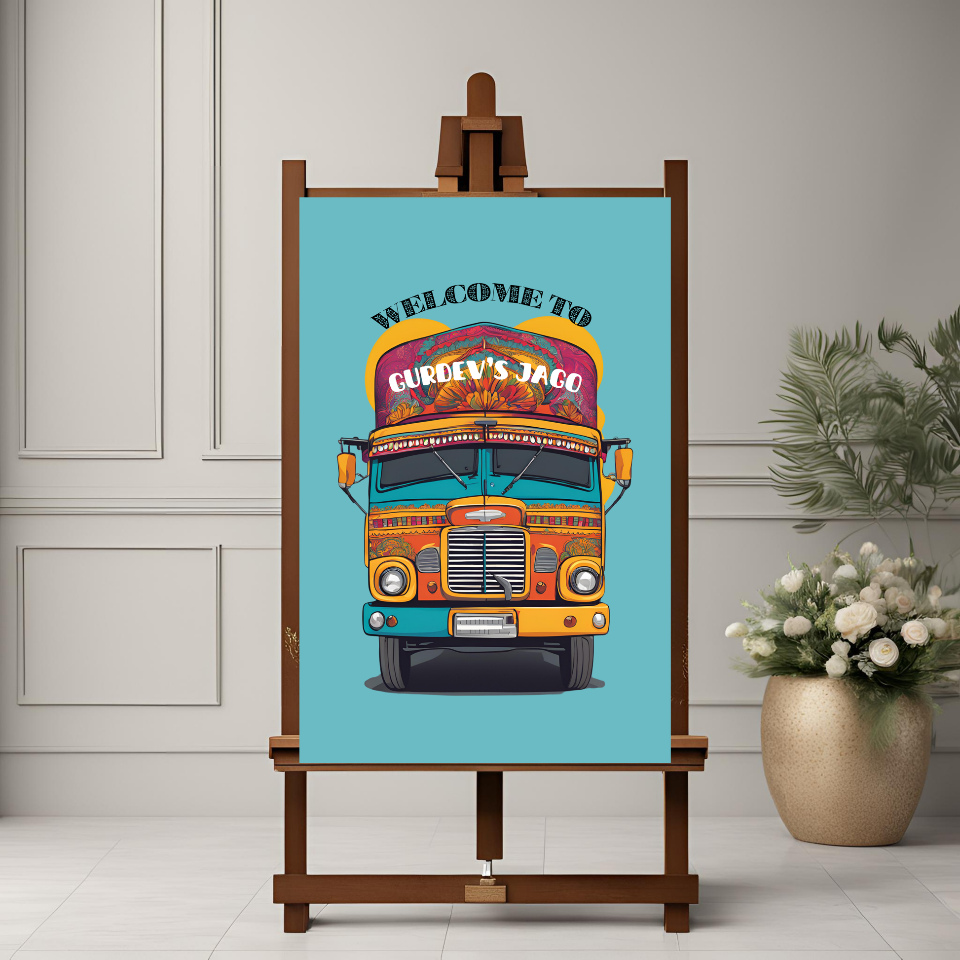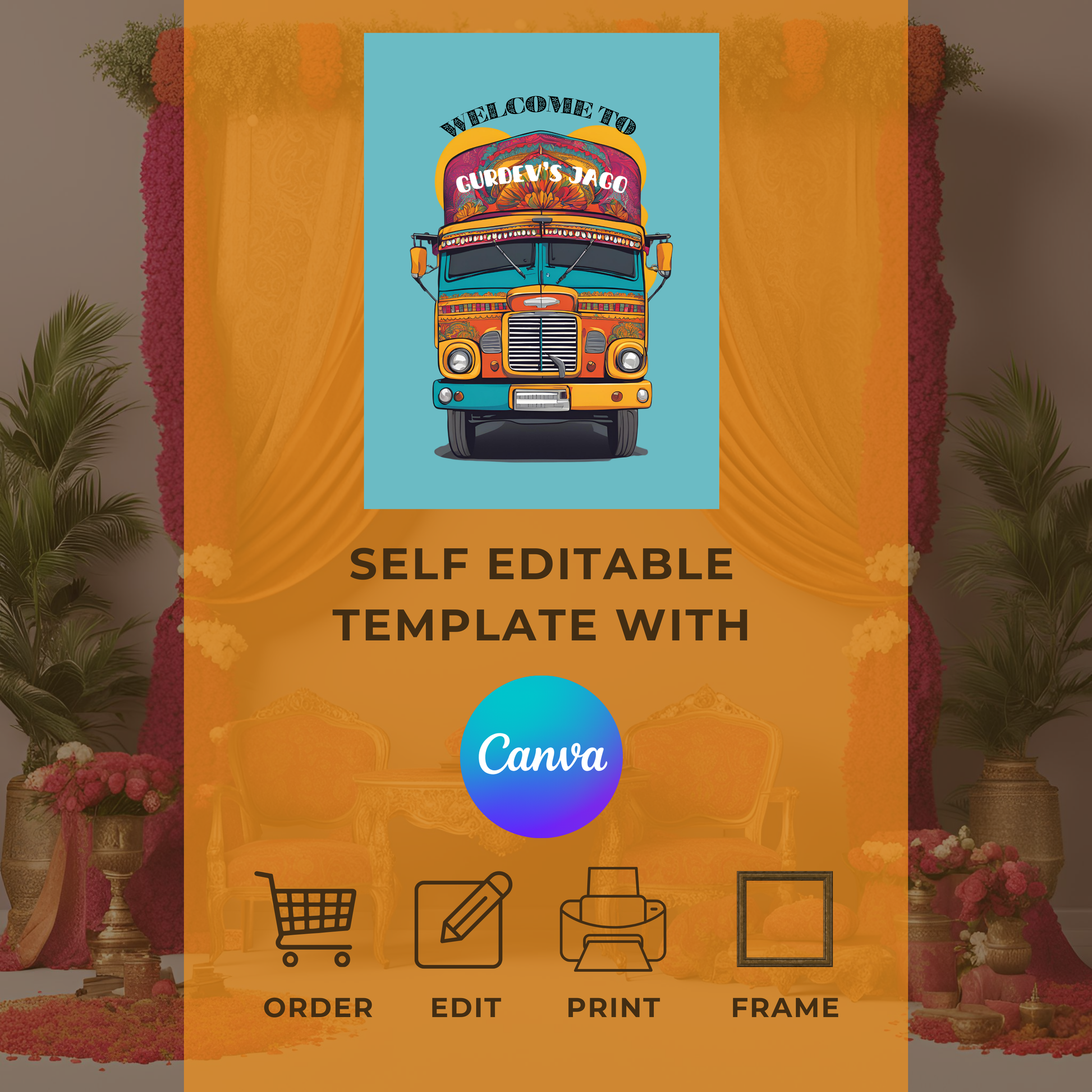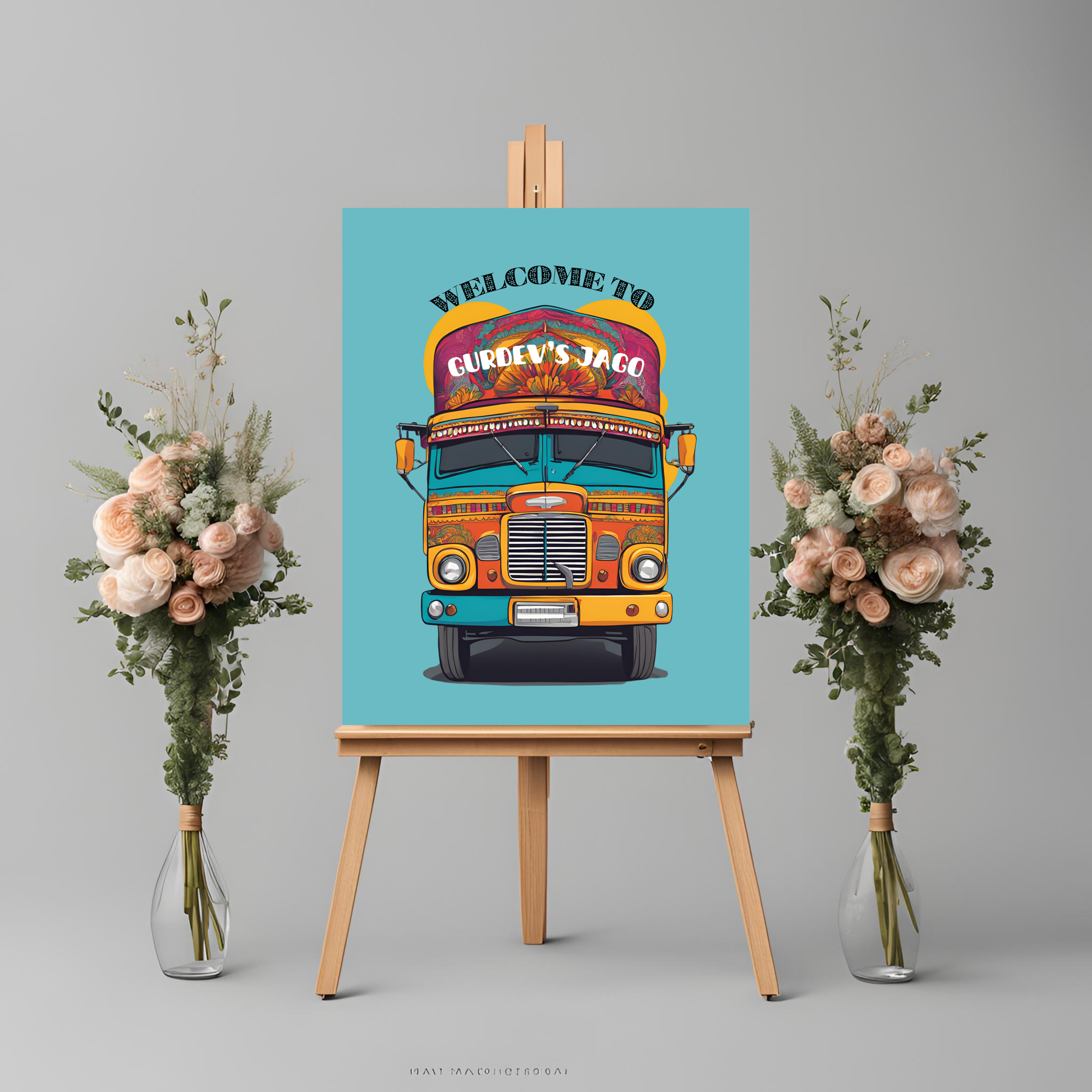 Add a burst of color and cultural flair to your event with our Punjabi Truck Entrance Board Digital Download. Inspired by the lively, artistic truck art of Punjab, this entrance board template features vibrant colors, intricate patterns, and playful motifs that bring energy and authenticity to weddings, birthdays, and festive gatherings. This Canva-editable template makes it easy to customize your welcome sign with your event details, offering a unique and memorable way to greet your guests.