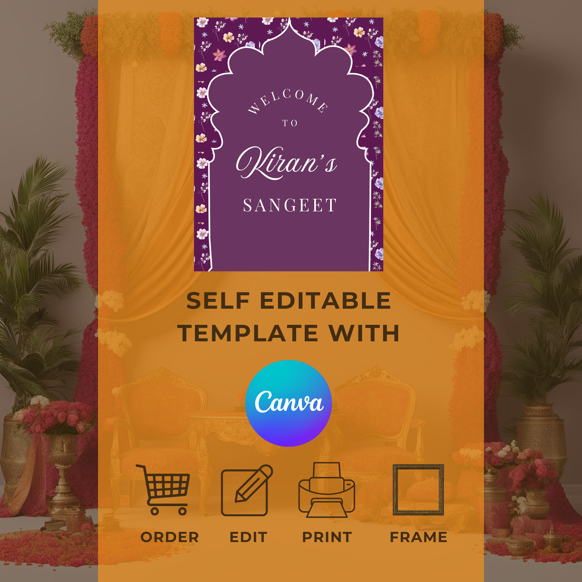 Set a regal and welcoming tone for your wedding with our Purple Entrance Board Digital Download. Featuring rich shades of purple and elegant design, this template adds sophistication and charm to your wedding entrance. Perfect for a variety of wedding themes including modern, vintage, and romantic, this entrance sign will create a stunning first impression and help guide your guests with style.