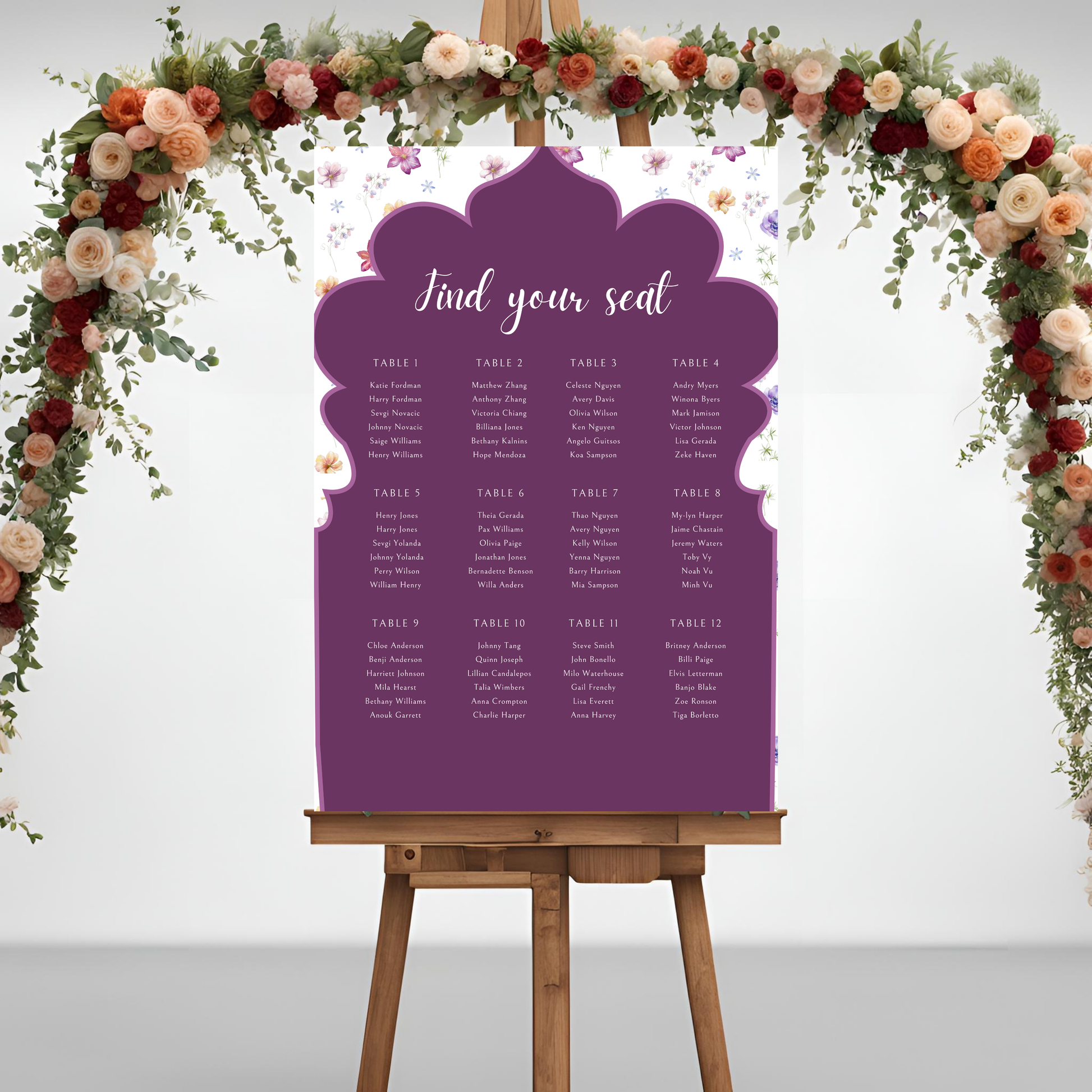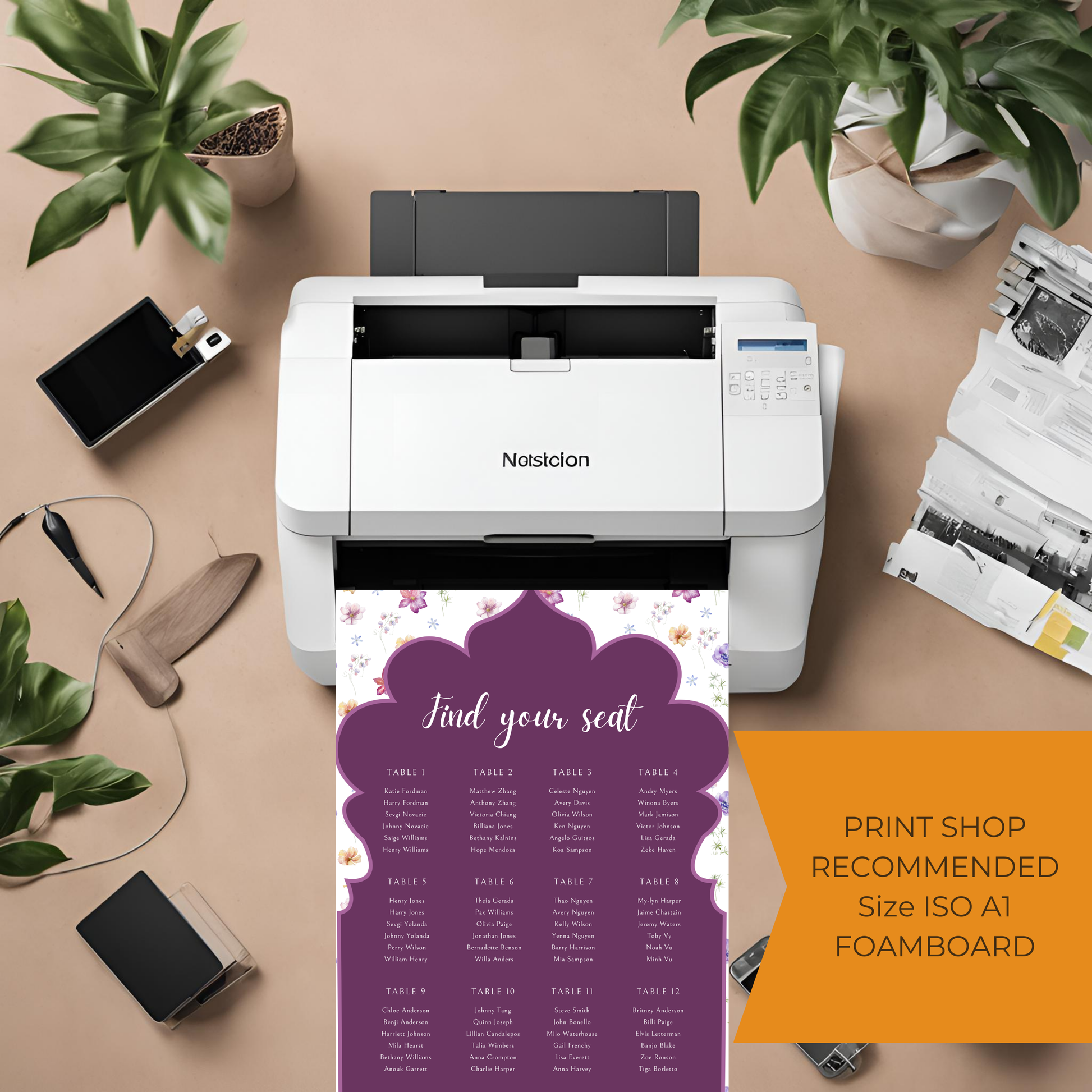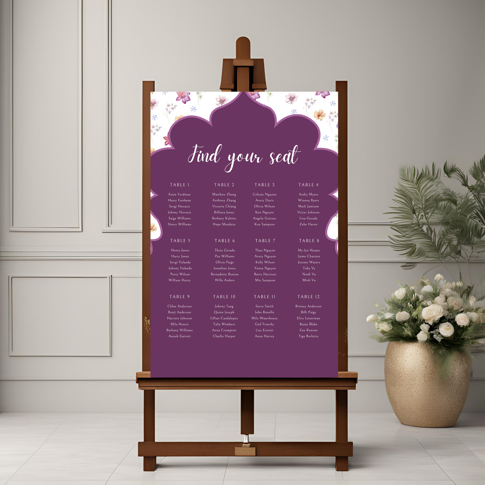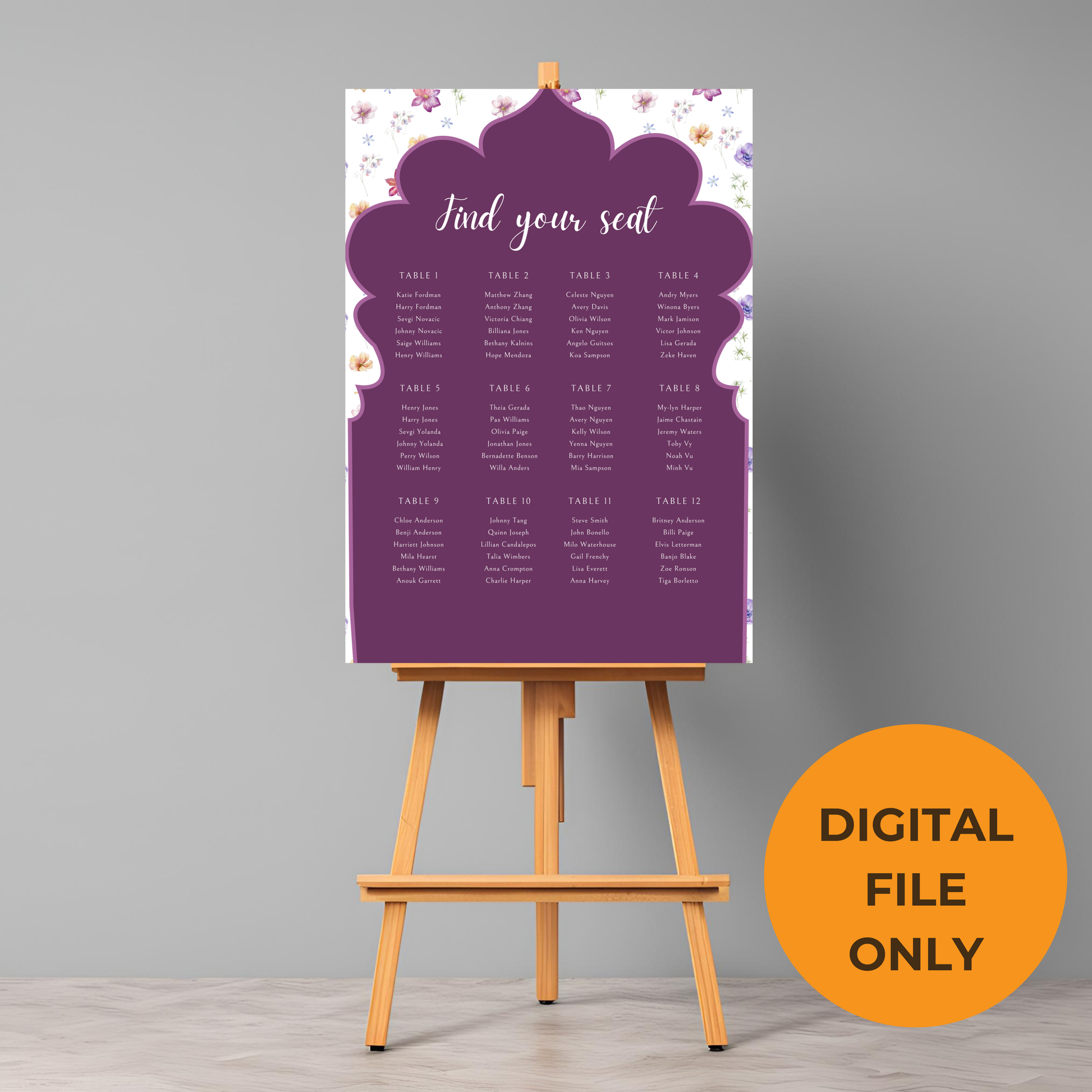 Purple Seating Plan Digital Download - Wedding Seating Chart Template