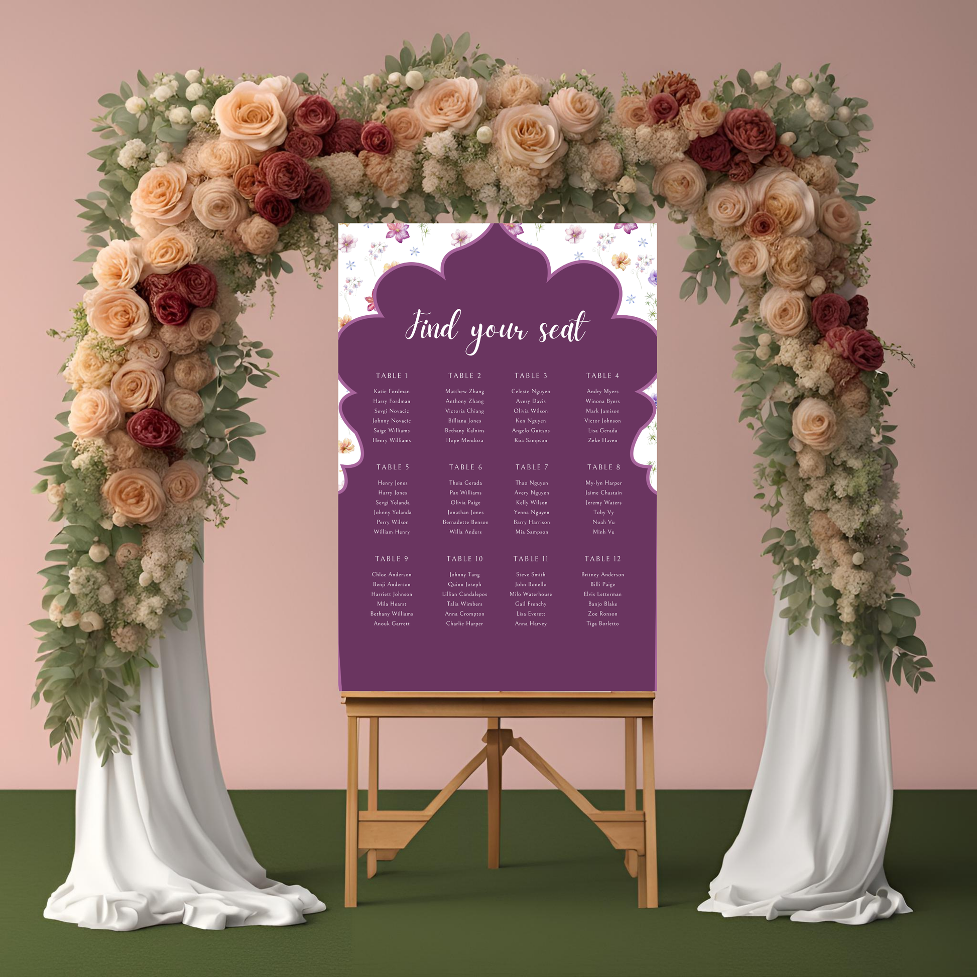 With the Purple Seating Plan Digital Download, your guests will feel welcomed and organized in style. This elegant seating chart template is perfect for couples looking to add a touch of luxury and sophistication to their wedding while keeping the planning process simple and affordable.