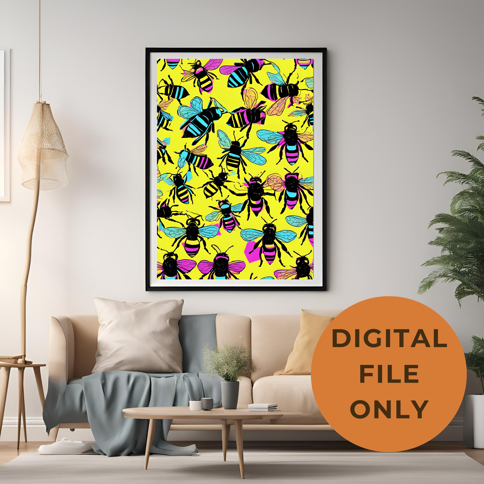 Why Choose Our Retro Neon Bee Pop Art Pattern Digital Printable Wall Art?