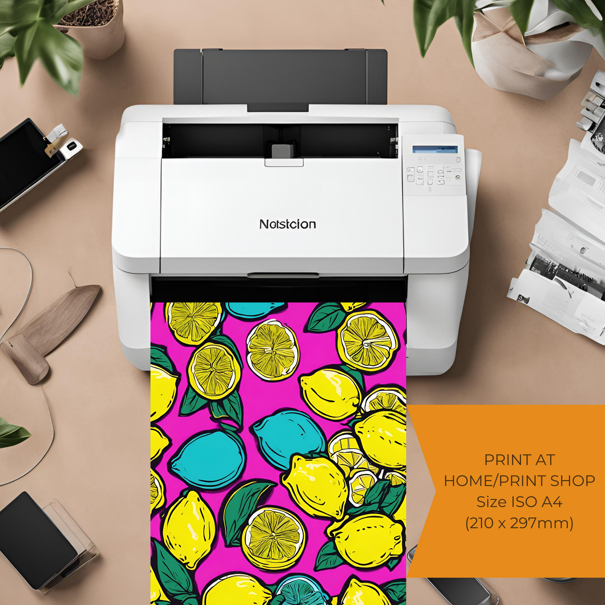 - Retro Neon Pop Art Design: Features a bold and colorful neon pattern with lemon motifs in a retro pop art style.