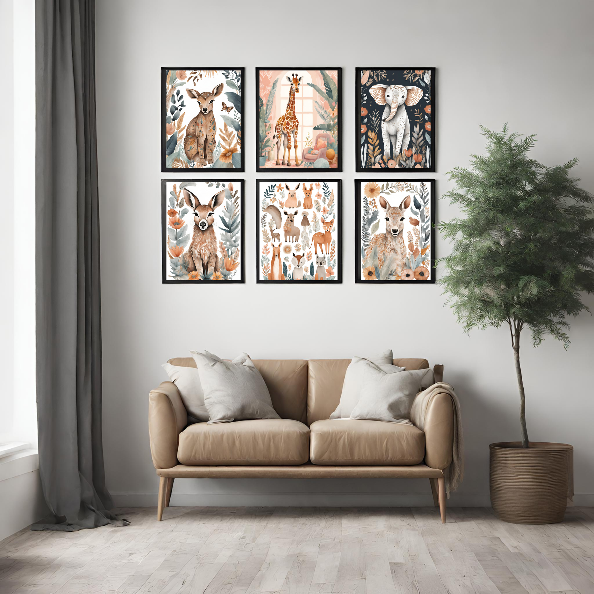 Soft, Playful Design: The artwork features a whimsical and gentle color palette that is perfect for nurseries. These prints are designed to bring a touch of the wild to a soft, serene space, with gentle lines and colors that are both engaging and calming for young ones.