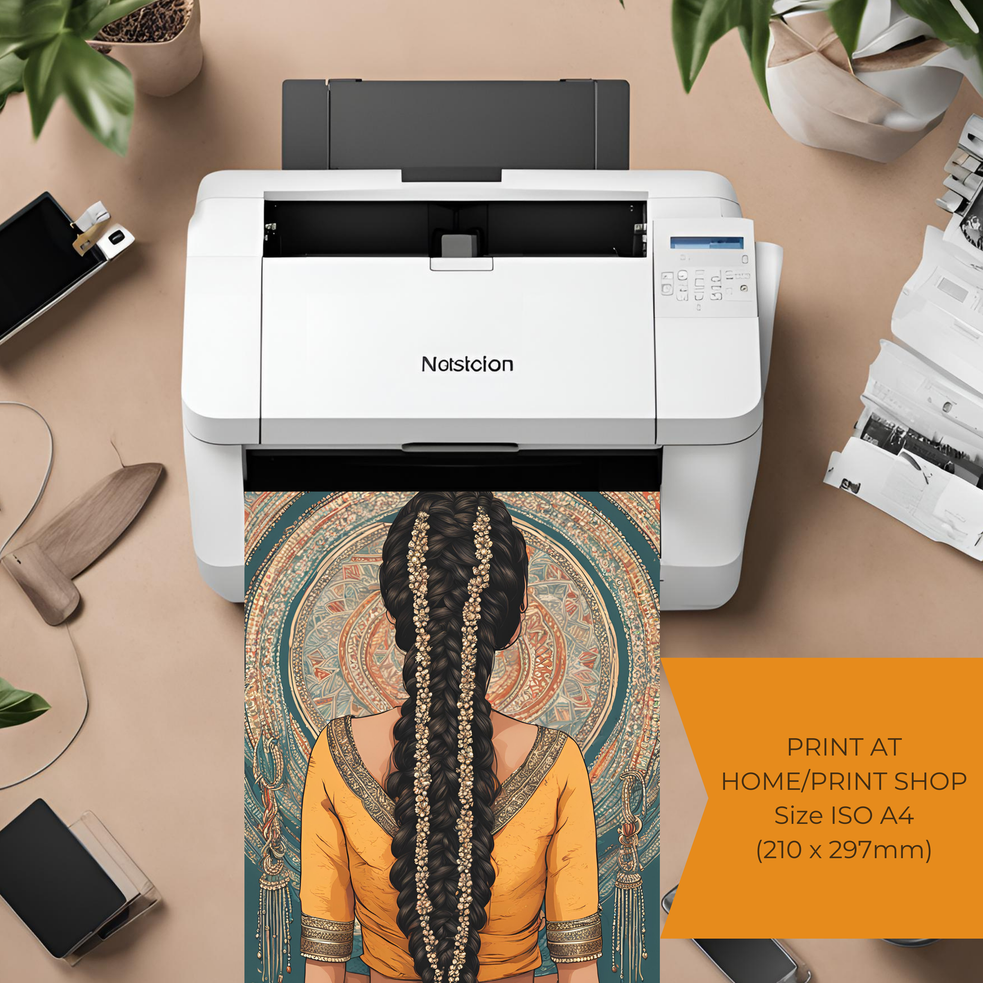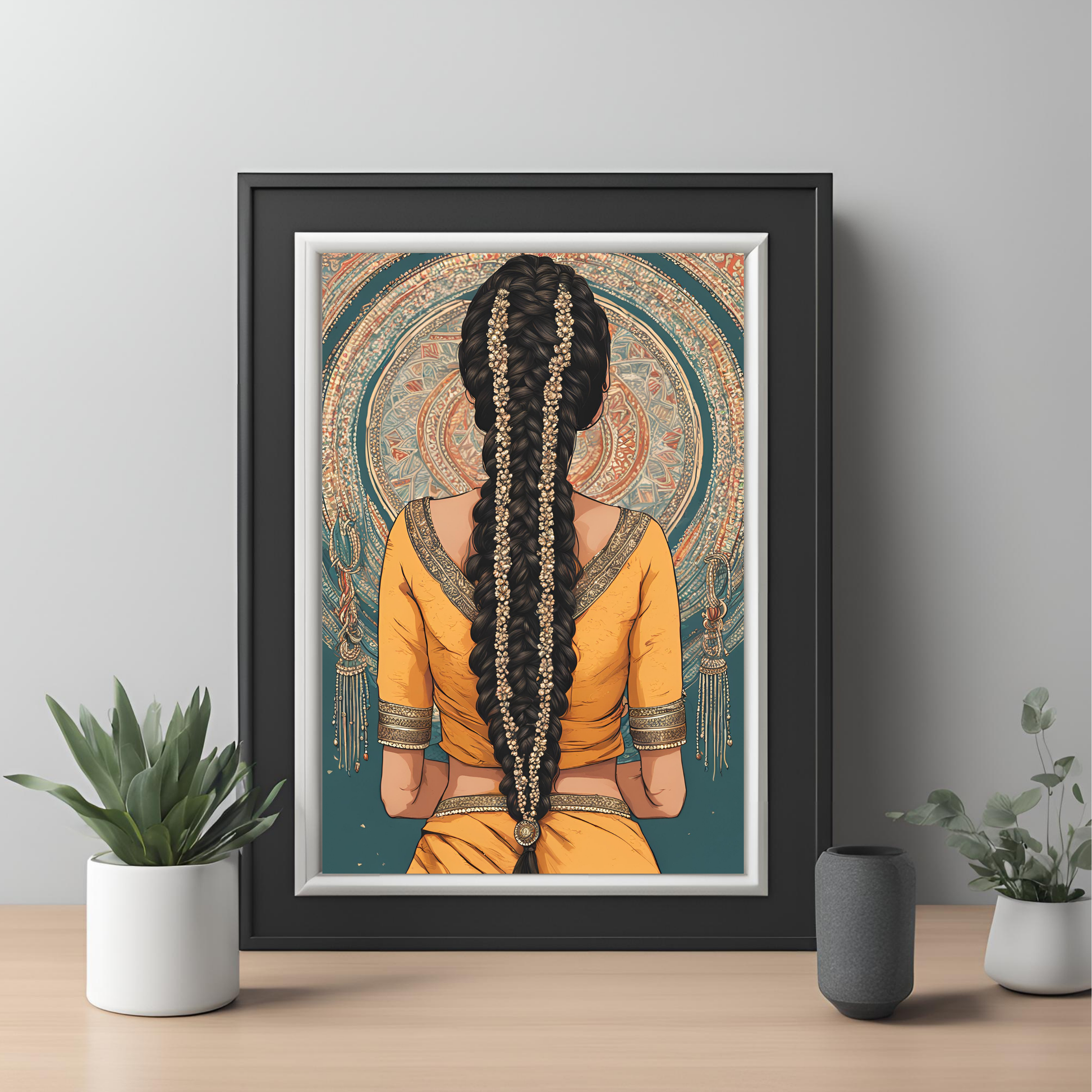 South Asian Art Punjabi Girl with Parande - Digital Printable Wall Art