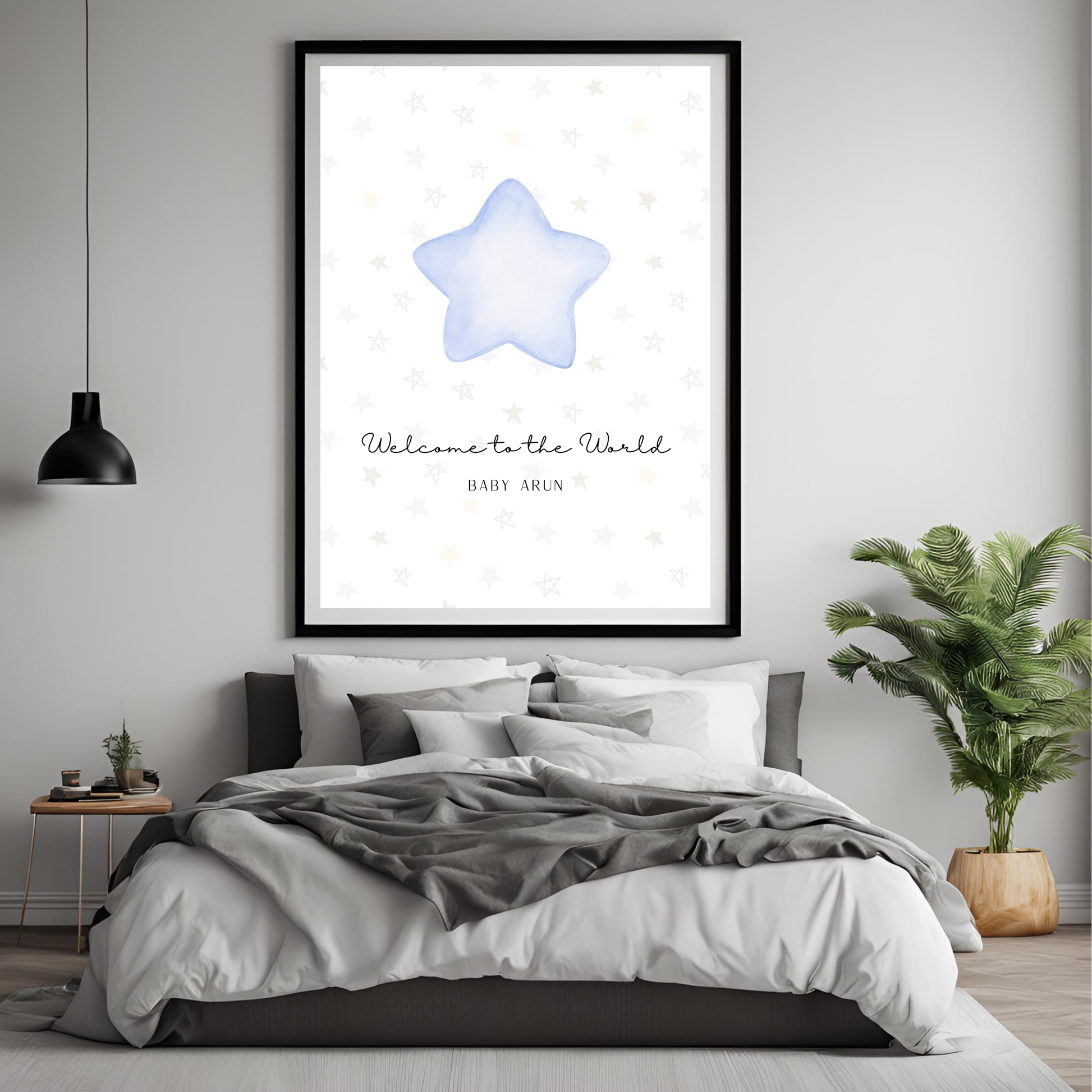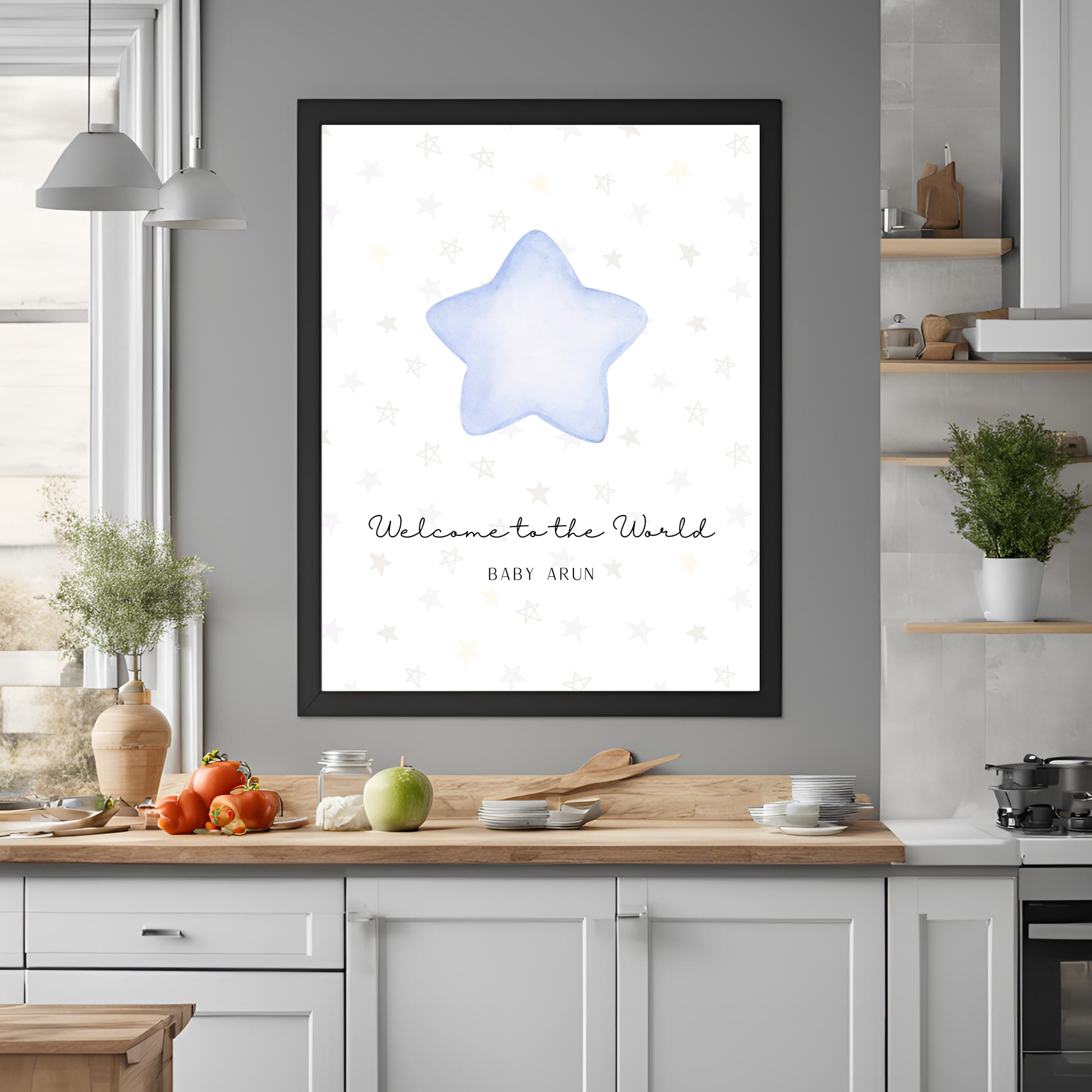 Create a timeless and personal memento of your baby’s arrival with the Star Baby Blue Customizable Print—a perfect way to add warmth and joy to your little one’s space!