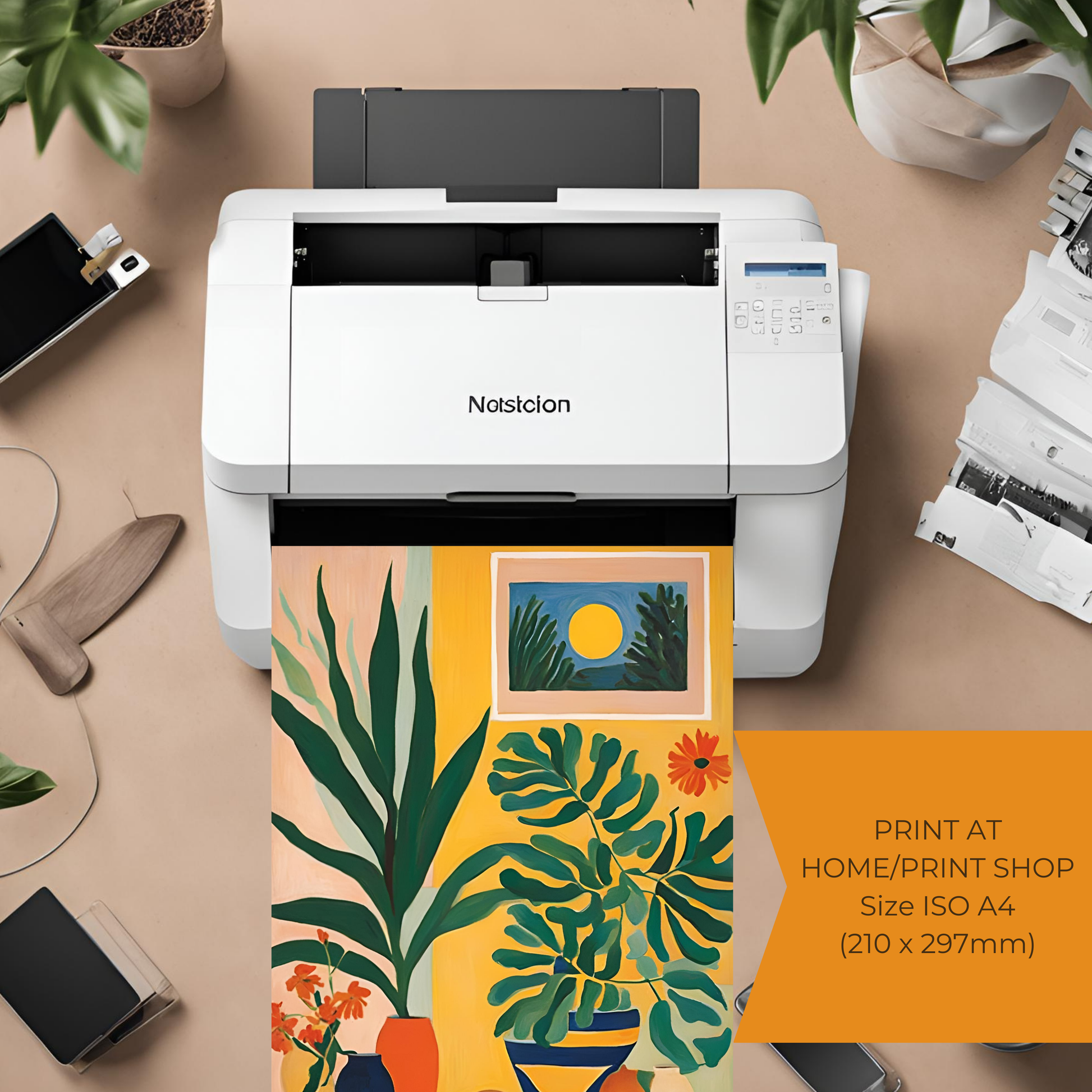 High-Resolution Quality: The file is high-resolution, ensuring vibrant colors and sharp details, allowing the sunset and plant silhouettes to stand out beautifully in your print.