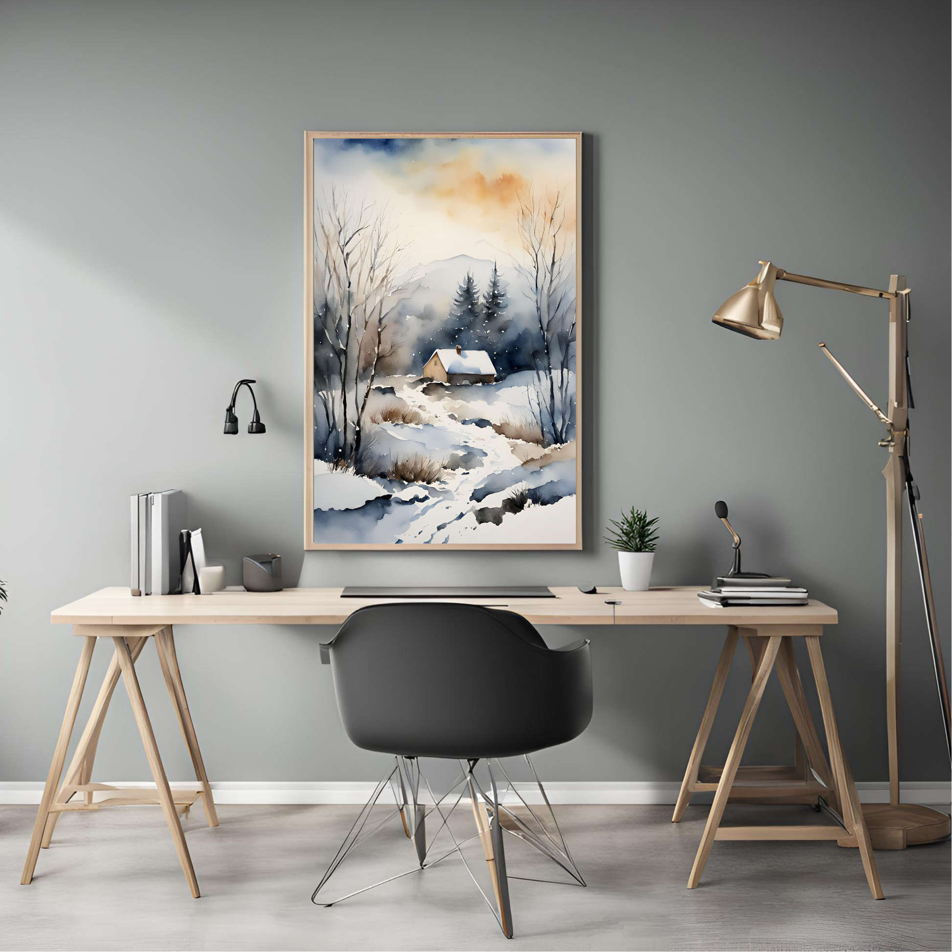 20 Stunning Winter-Themed Prints: This collection includes a diverse range of winter-inspired artwork, including snowy landscapes, frozen forests, cozy cabins, winter wildlife, and festive elements. Perfect for creating a cohesive, seasonal theme.