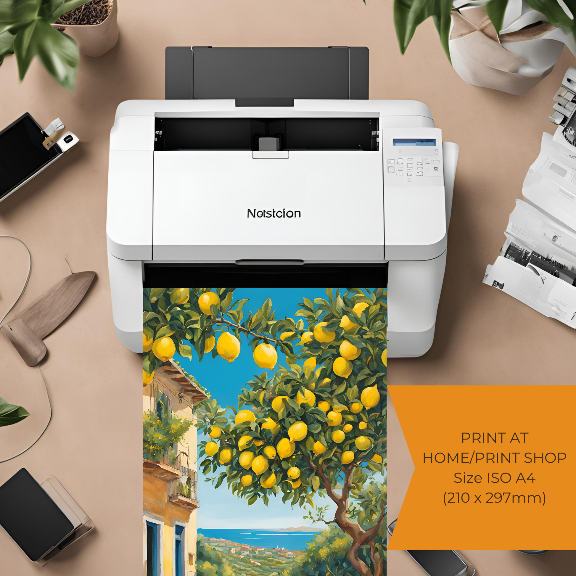 High-Resolution Quality: The digital file is high-resolution, ensuring your print will have crisp details and rich, vivid colors, capturing the bright beauty of Italy’s famous lemons and countryside.